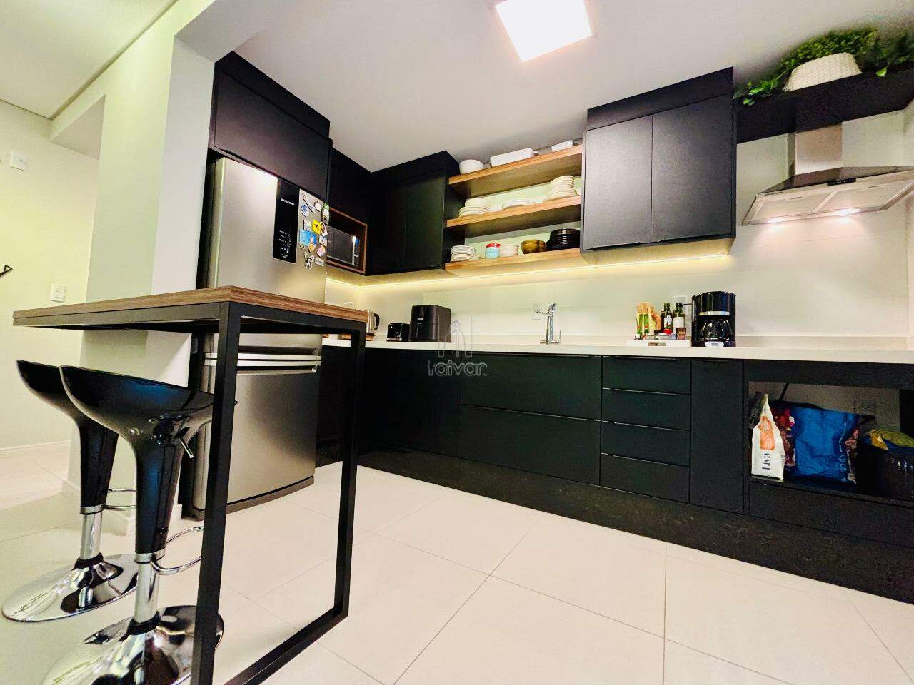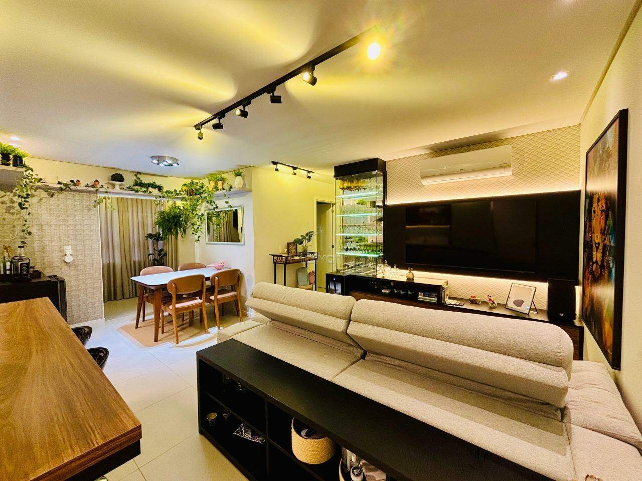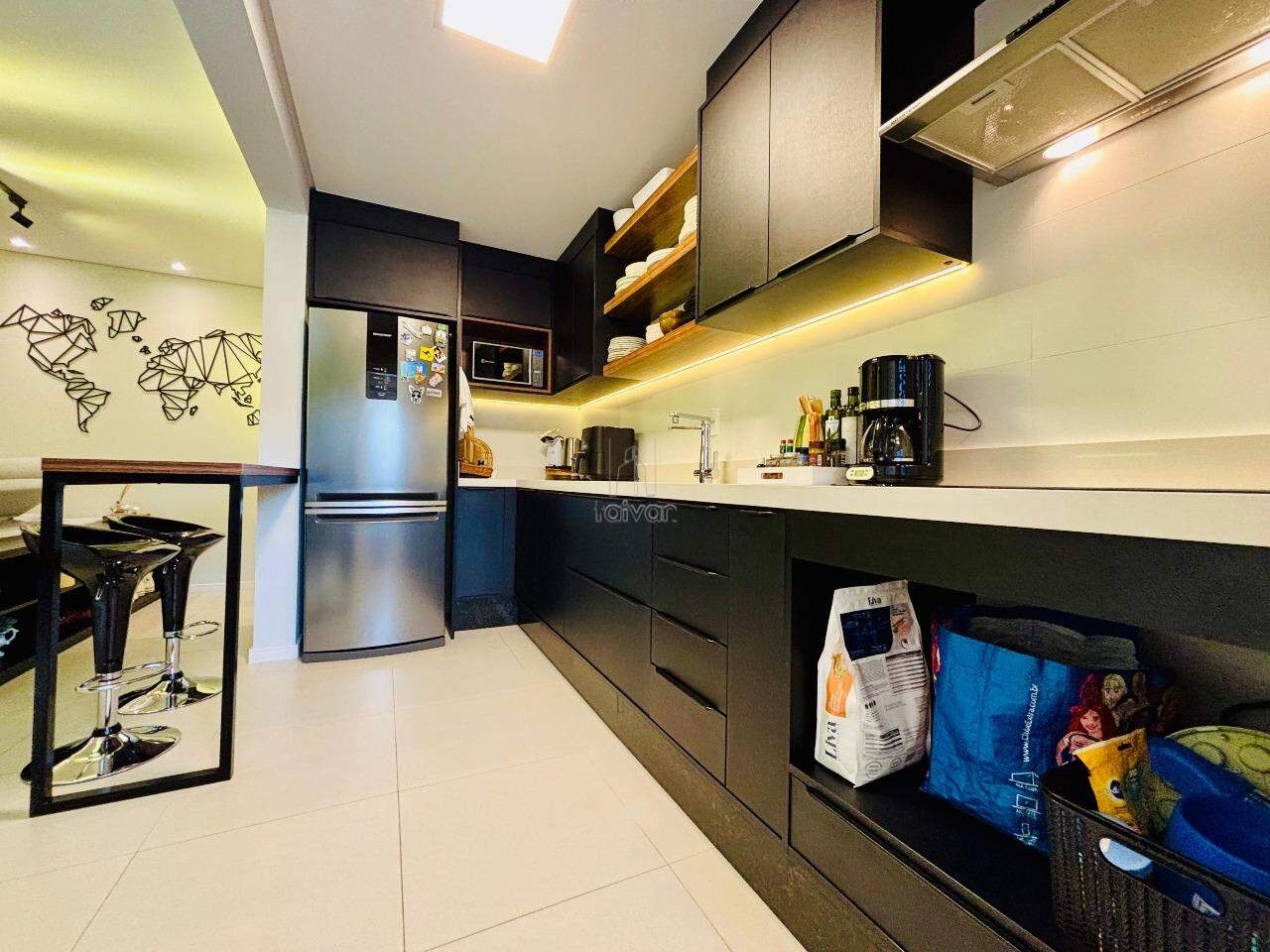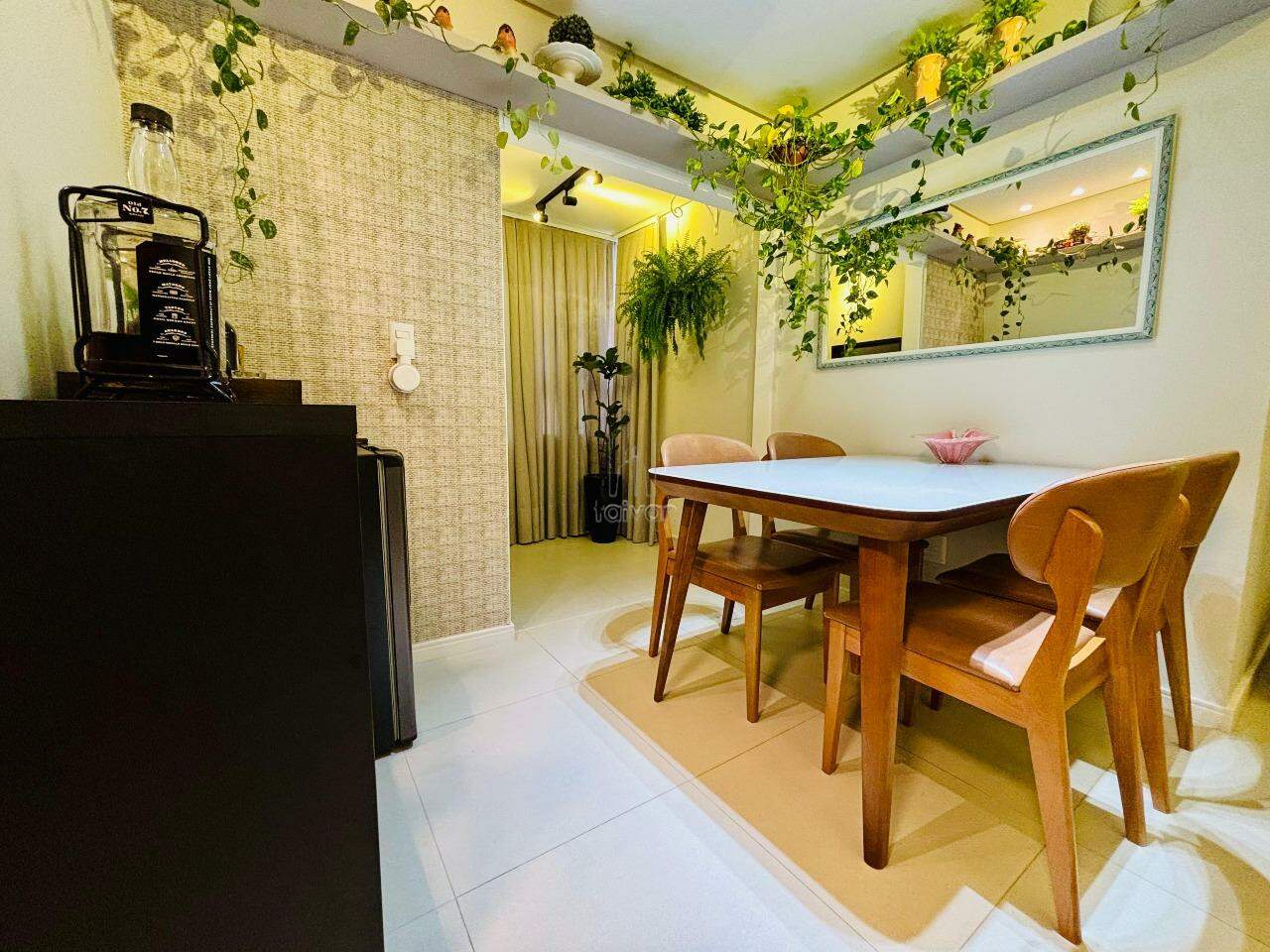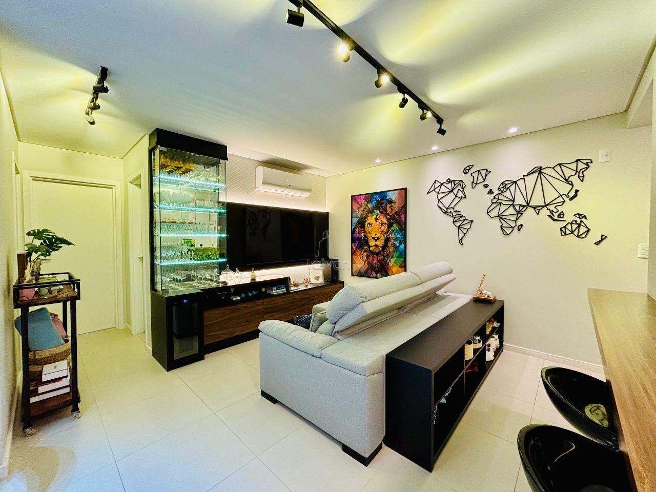 Imóvel com sala de estar, jantar, cozinha e sacada com churrasqueira integradas, 1 suíte + 1 quarto, banheiro social, área de serviço e 1 vaga.