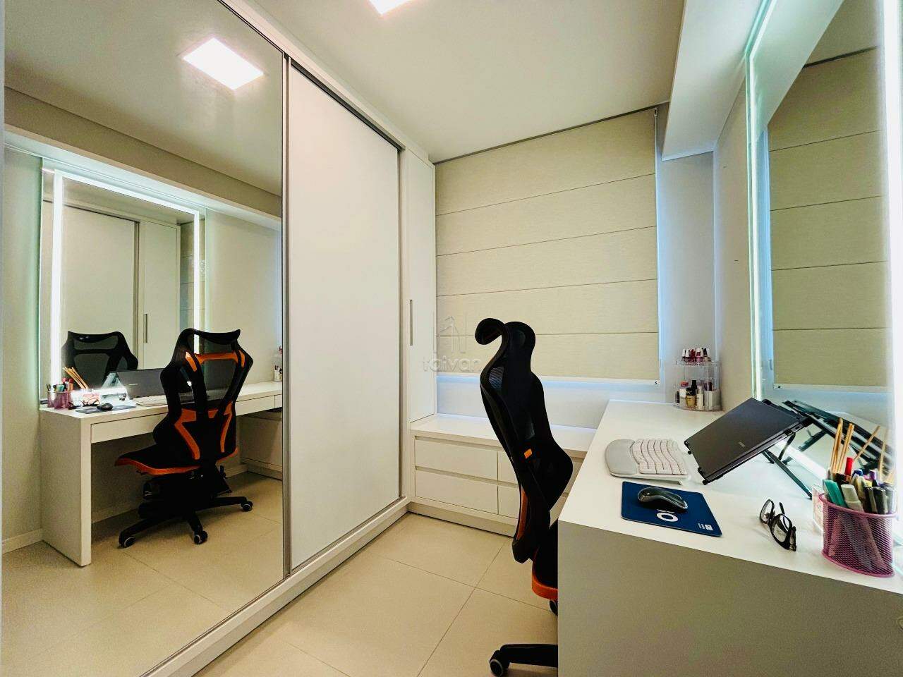 Permanecem no imóvel os móveis sob medida na suíte, quarto, sala de estar, cozinha, área de serviço e banheiros, eletrodomésticos embutidos, luminárias, cortinas/persianas.