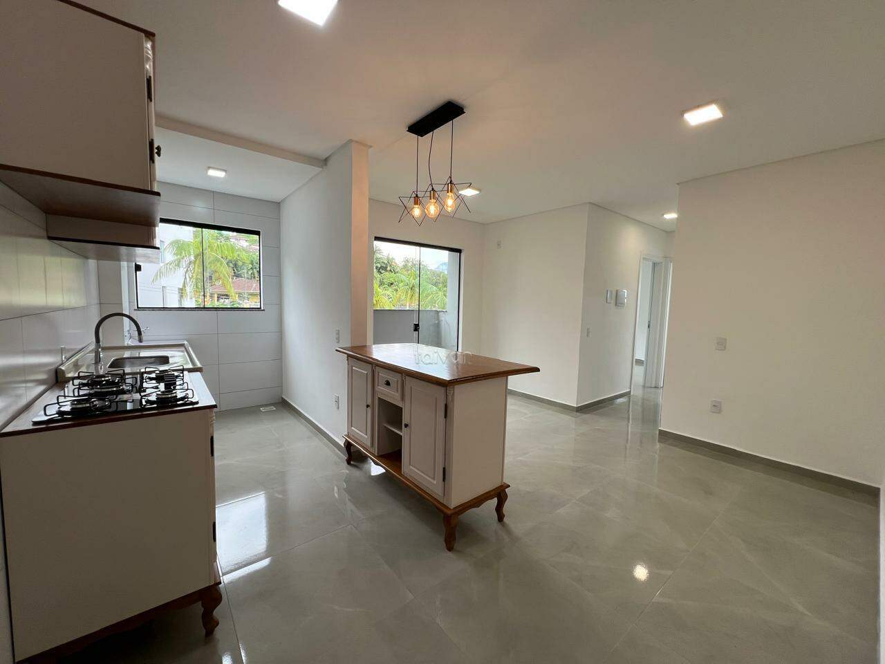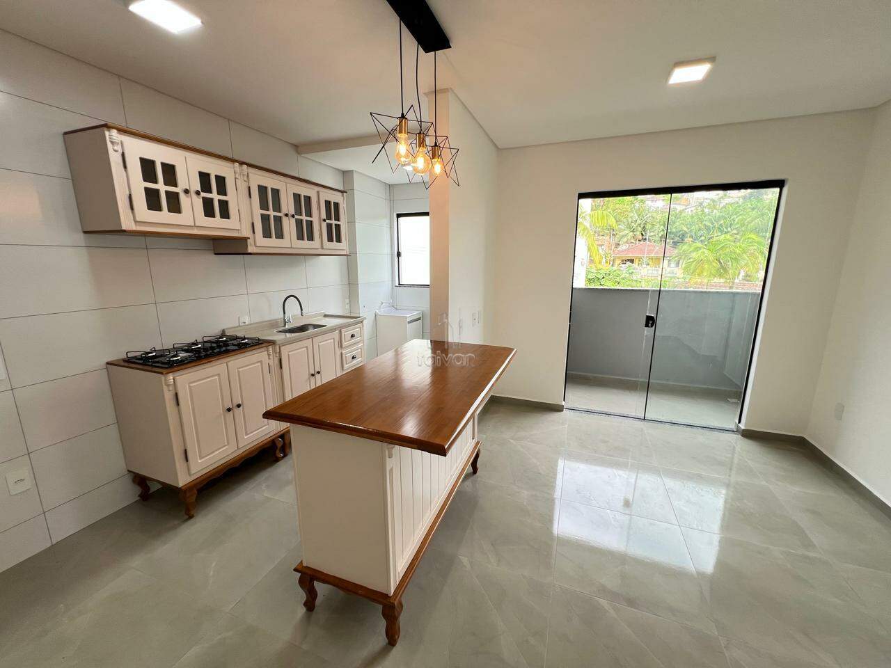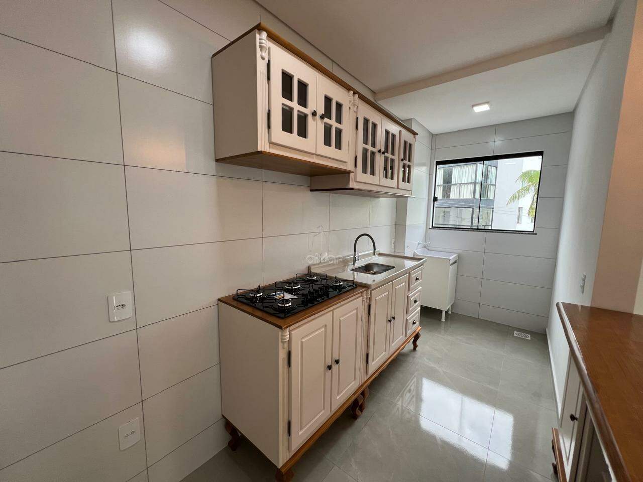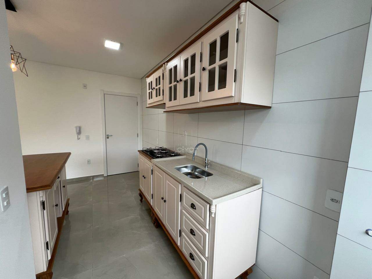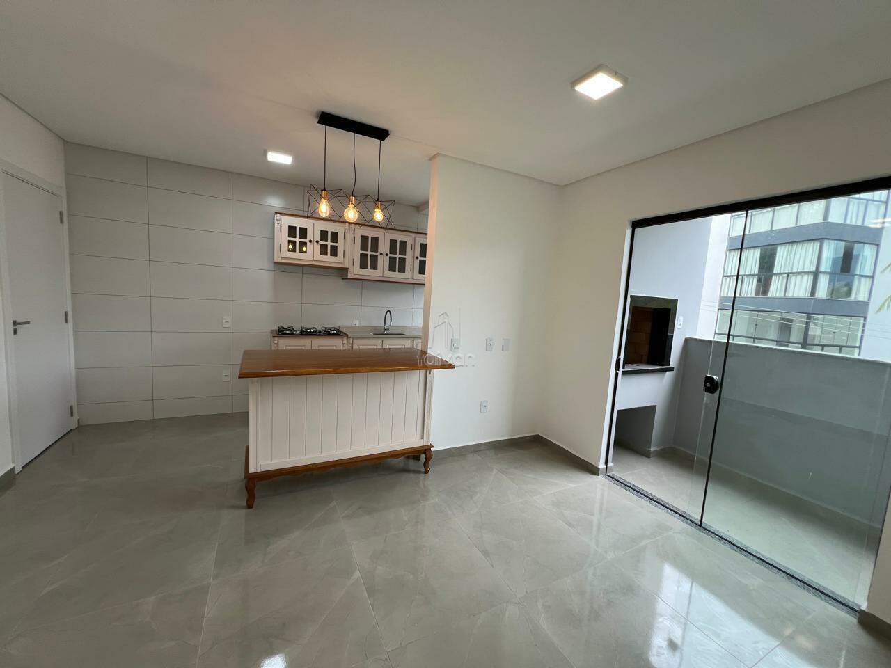 Imóvel conta com sala de TV e cozinha integradas, 1 suíte, 1 quarto, banheiro social, área de serviço e sacada com churrasqueira.