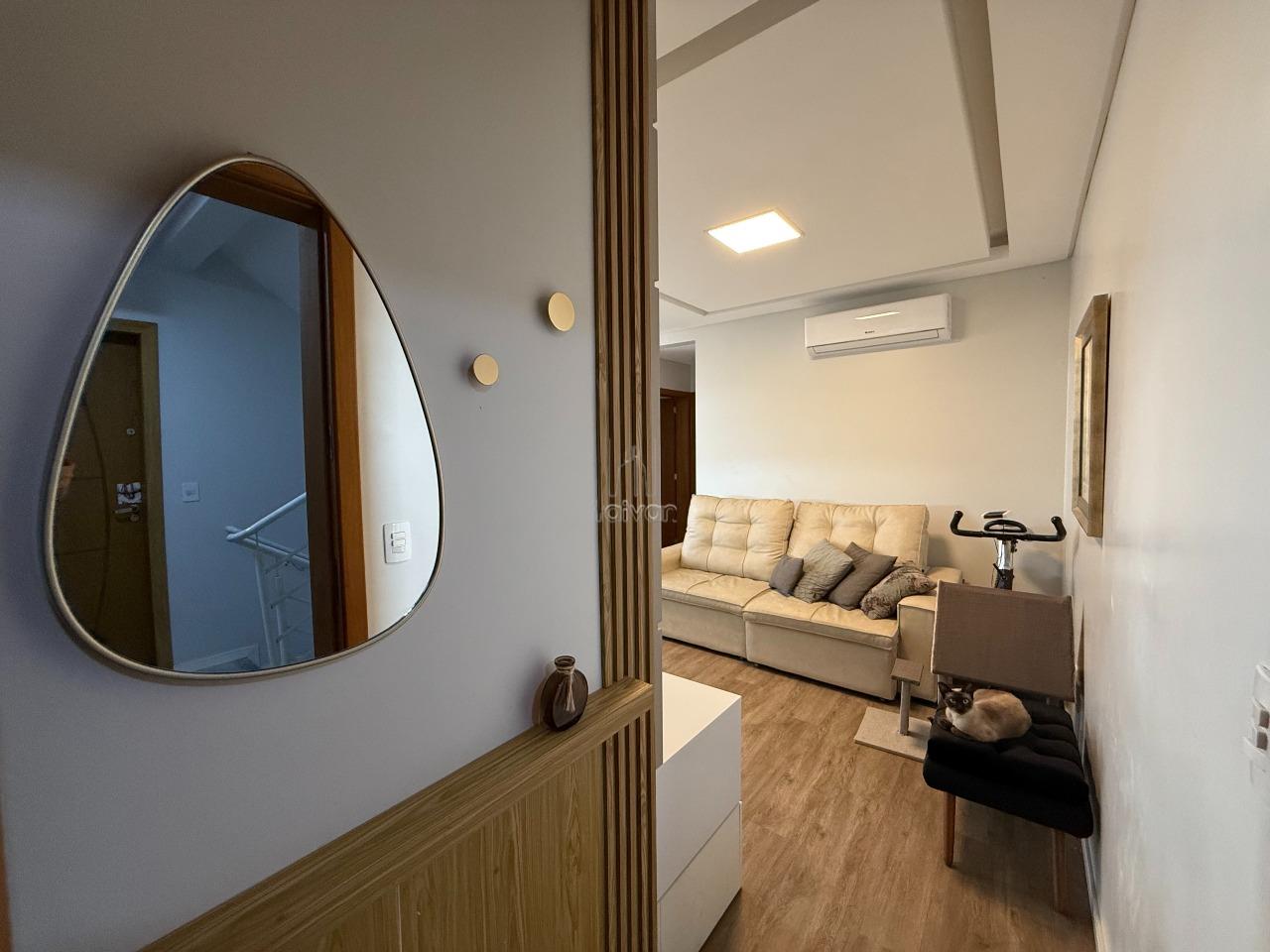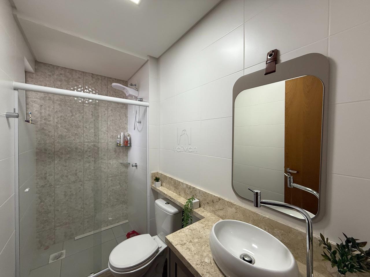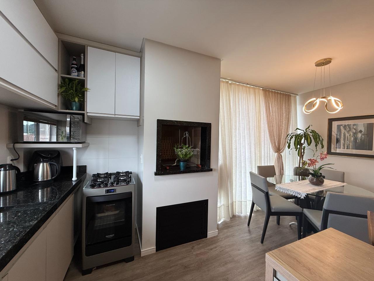 Conta com sala de estar, jantar, cozinha e churrasqueira integradas, 1 suíte + 1 quarto, 1 banheiro social, área de serviço e 1 vaga.