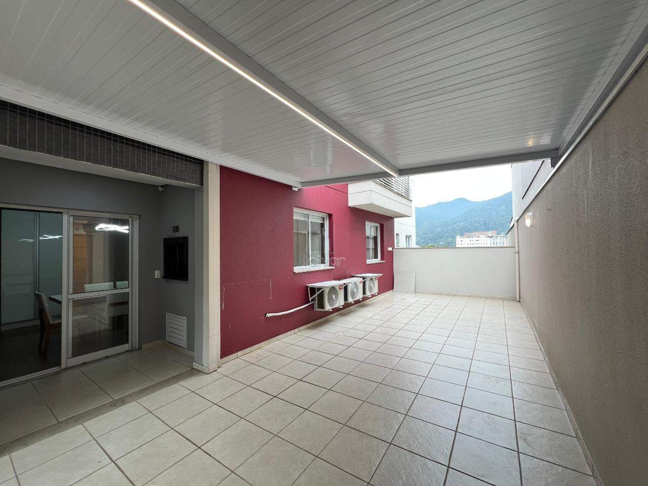 Imóvel com amplo terraço equipado com churrasqueira, sala de estar, sala de jantar e cozinha integradas, 01 suíte, 01 quarto, banheiro social, área de serviço.
