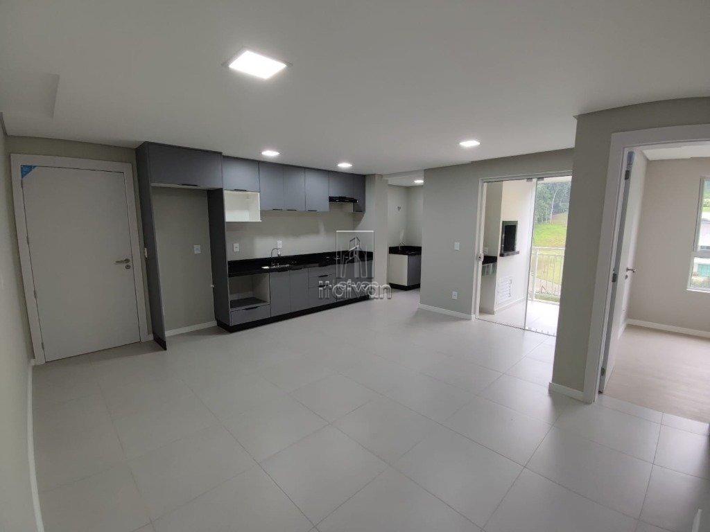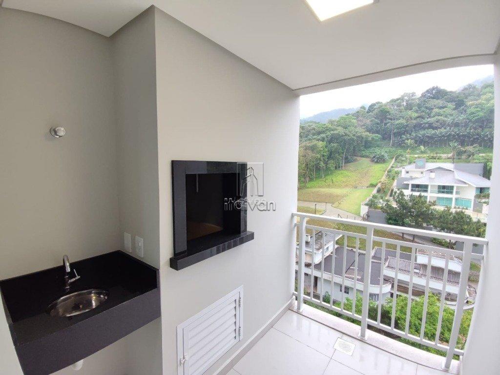 Apartamento em andar alto com sala de estar, jantar e cozinha integradas, 1 suíte + 1 quarto, 1 banheiro social, área de serviço, sacada com churrasqueira e 1 vaga.