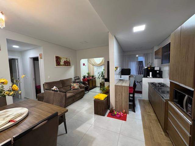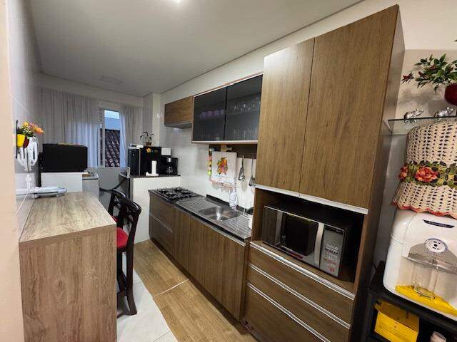 Imóvel com sala de estar e jantar, cozinha, 1 suíte + 1 quarto, banheiro social, área de serviço, sacada com churrasqueira e 1 vaga.