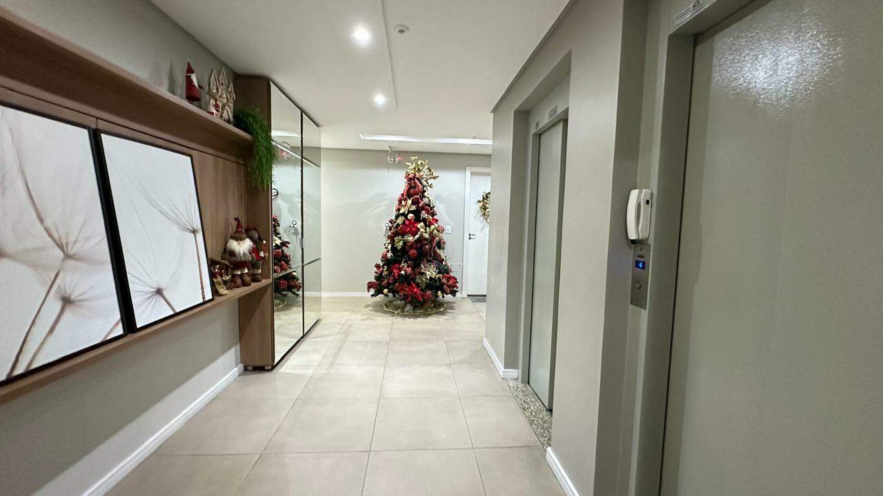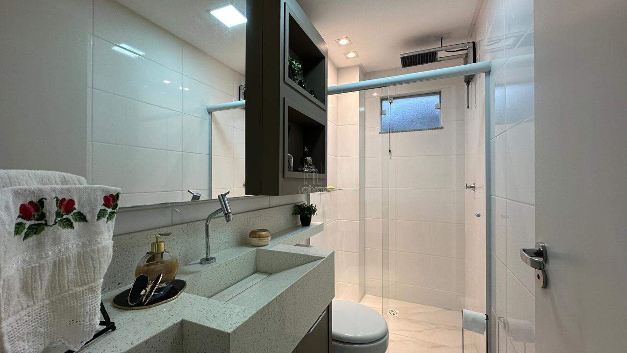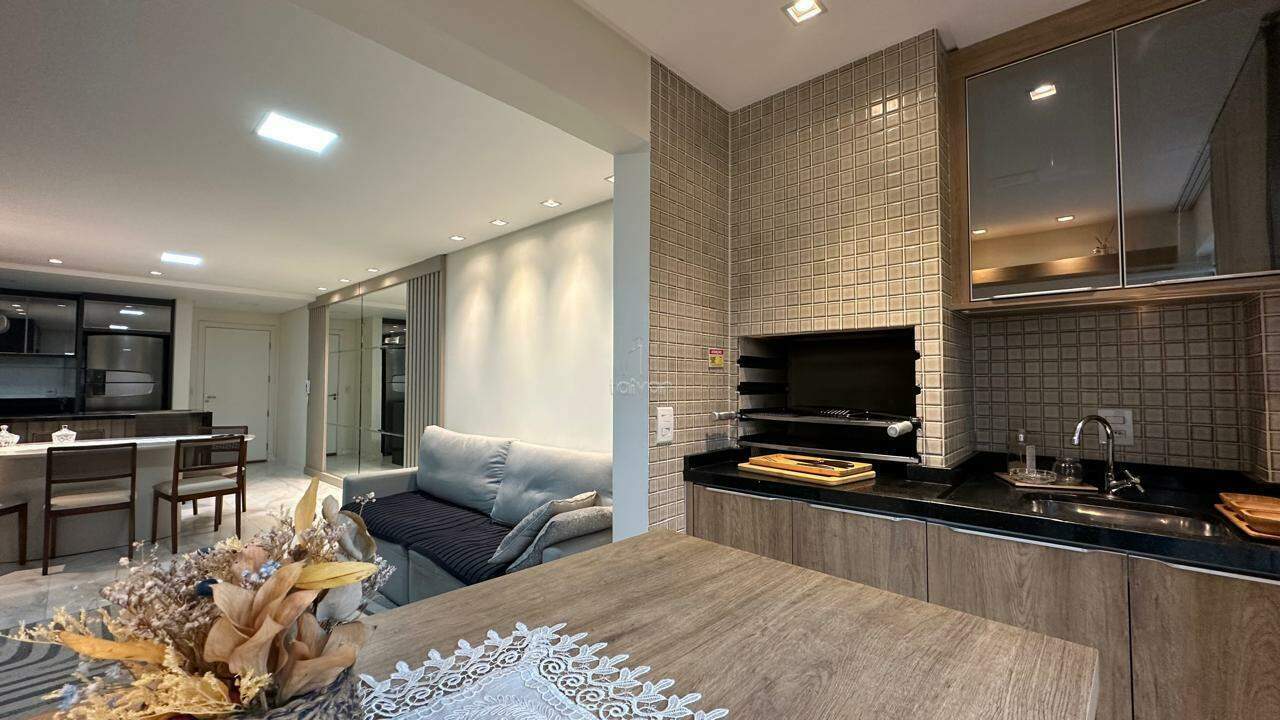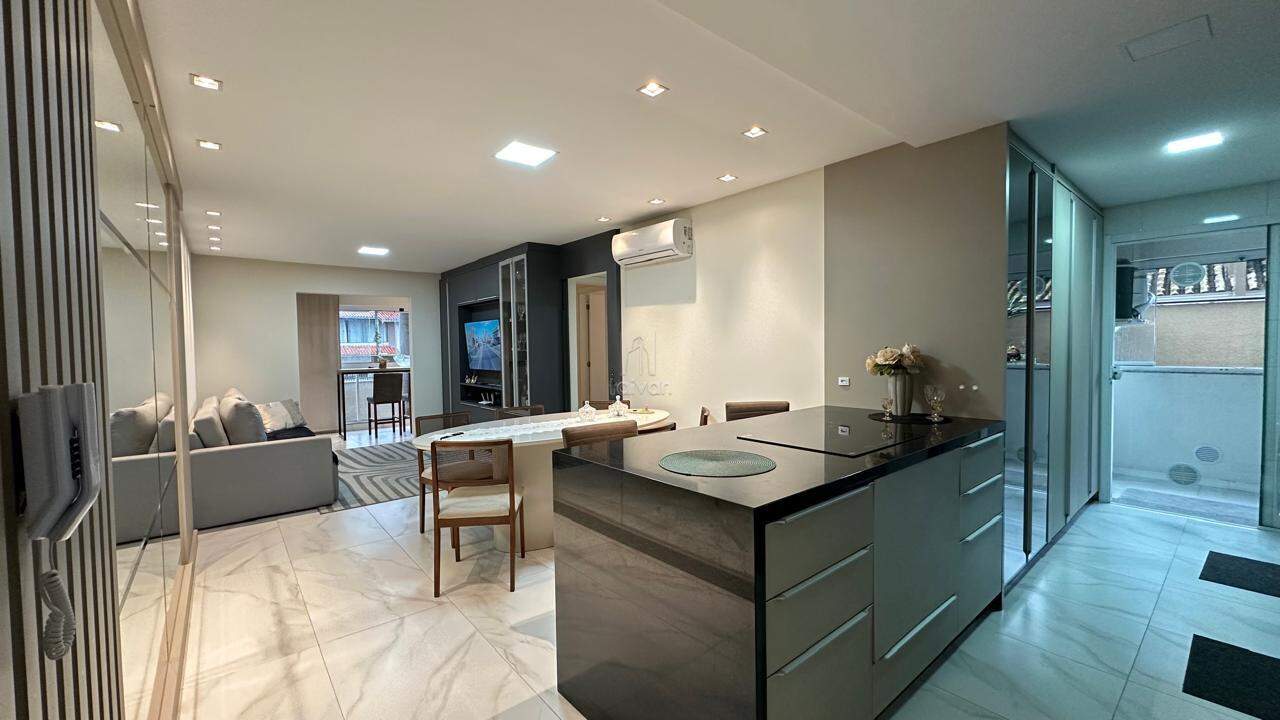 Conta com sala de estar, jantar e cozinha integradas, 1 suíte, 1 quarto, 1 banheiro social, área de serviço, sacada com churrasqueira e 1 vaga.