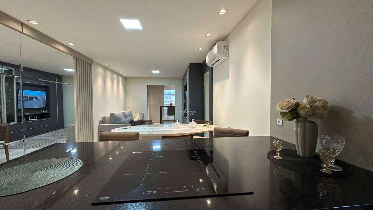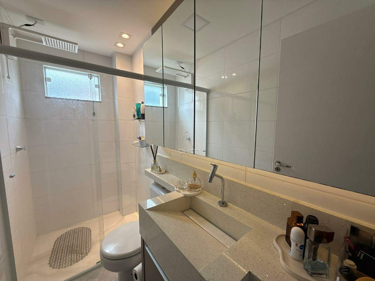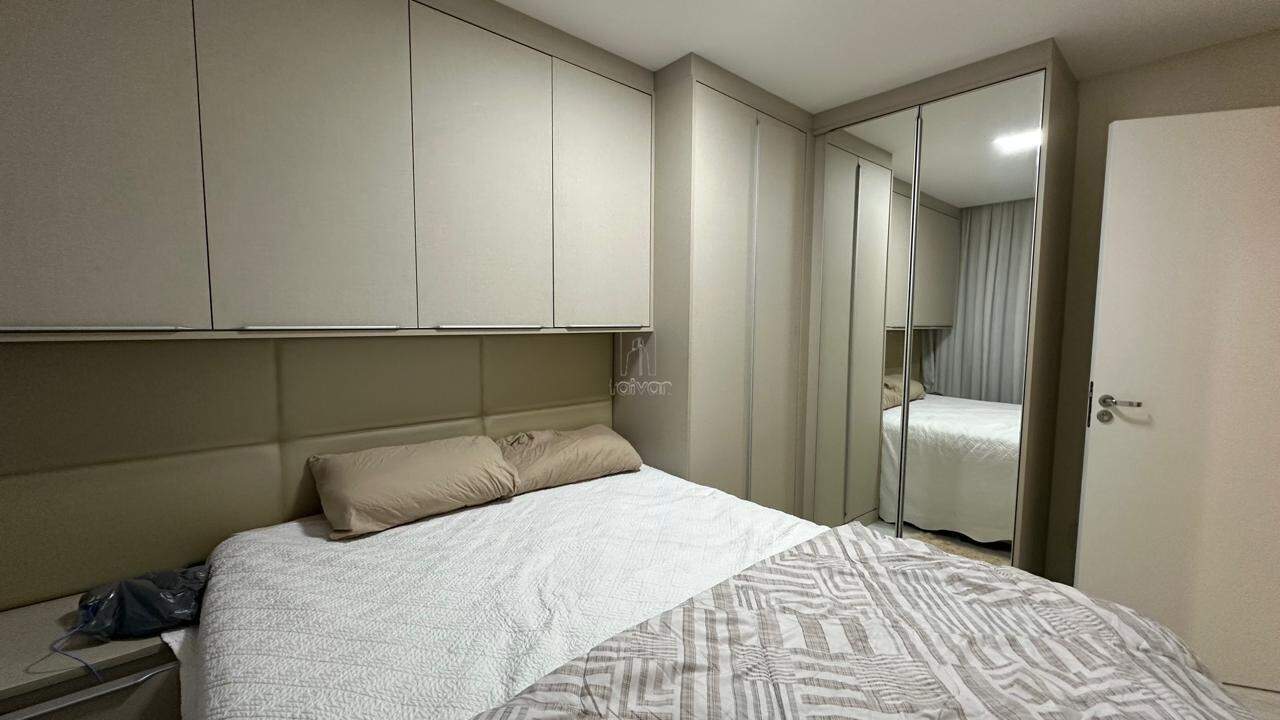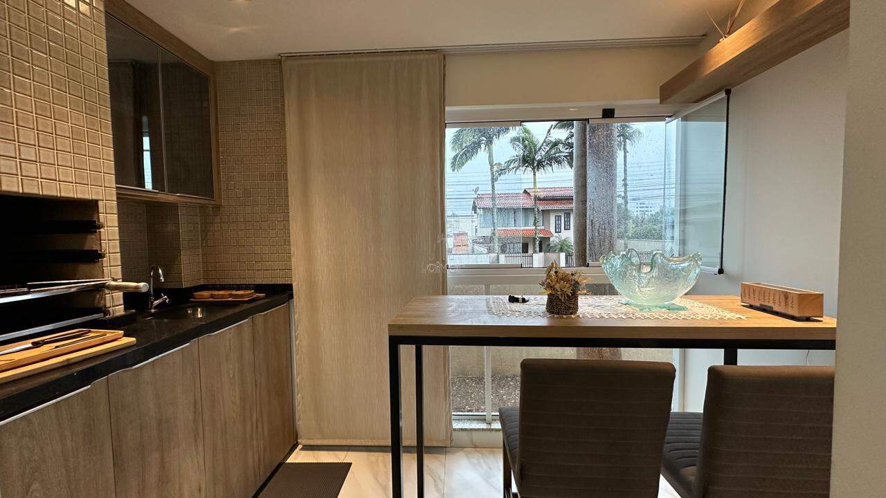 Conta com sala de estar, jantar e cozinha integradas, 1 suíte, 1 quarto, 1 banheiro social, área de serviço, sacada com churrasqueira e 1 vaga.