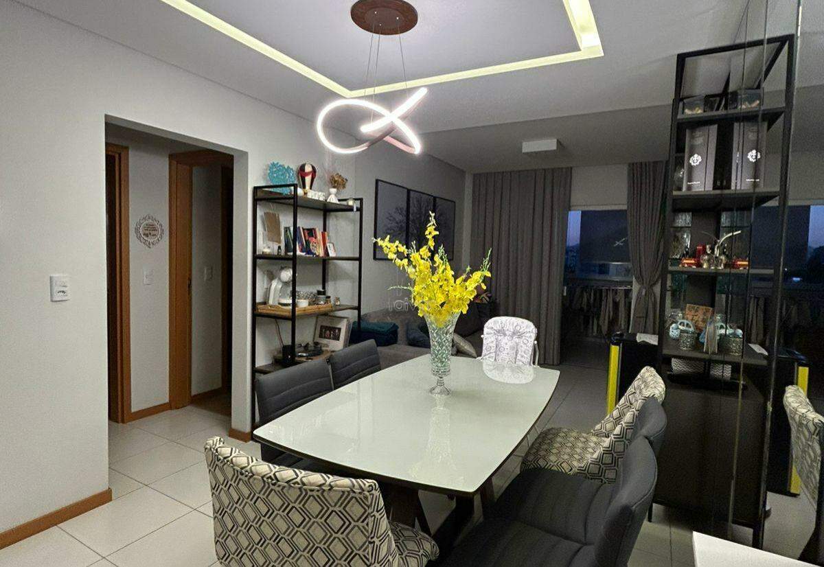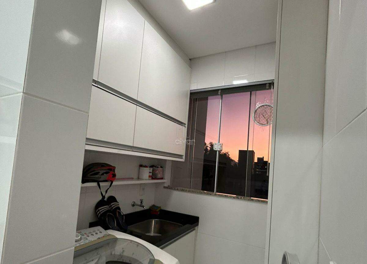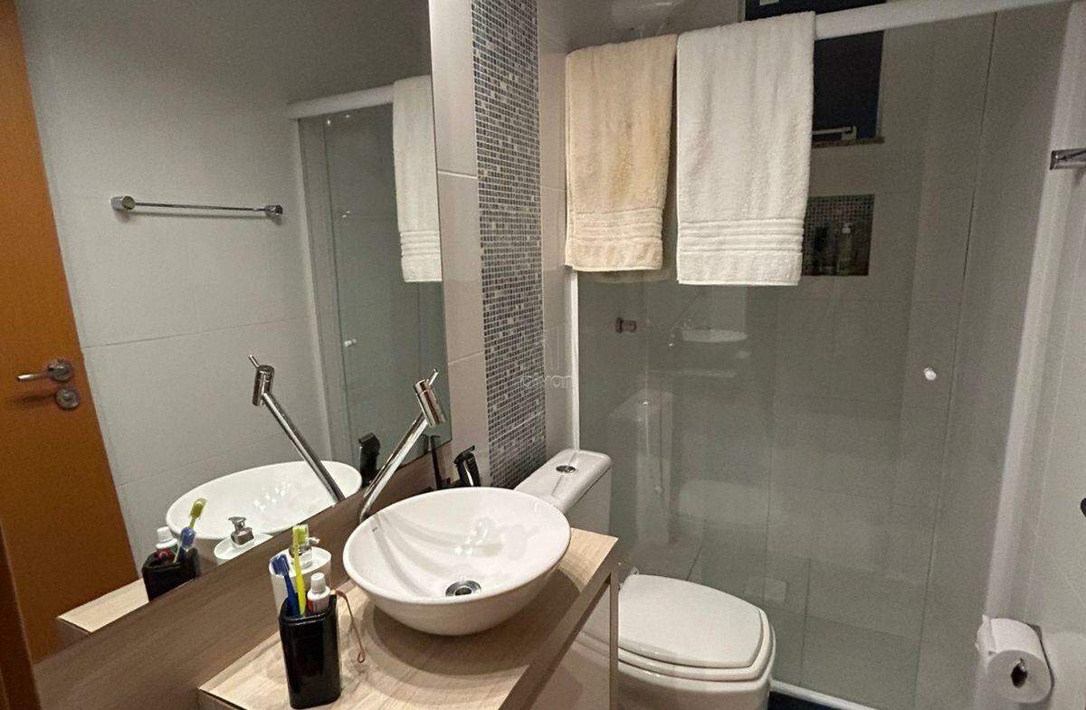 O apartamento possui uma sala de estar e jantar integradas, cozinha, 1 suíte, 1 quarto, banheiro social, área de serviço e 1 vaga de garagem.