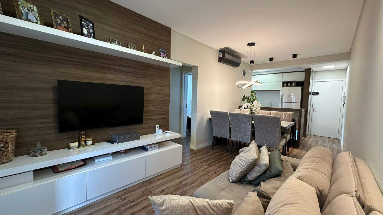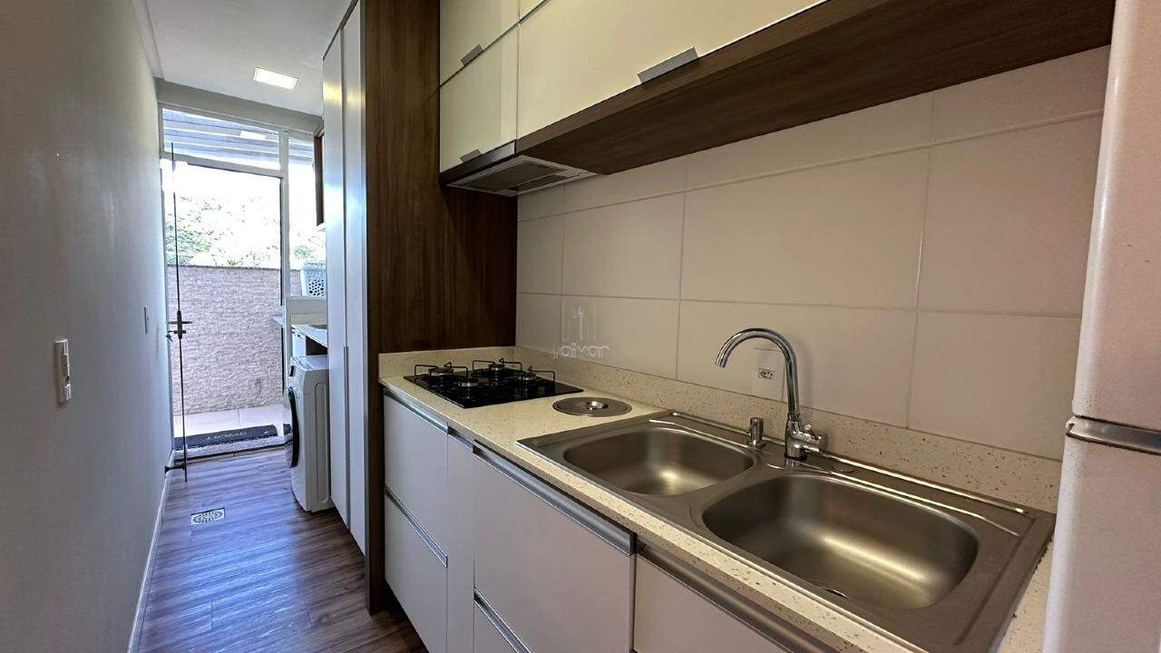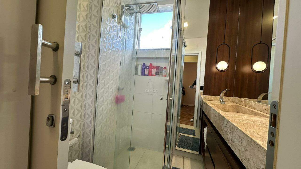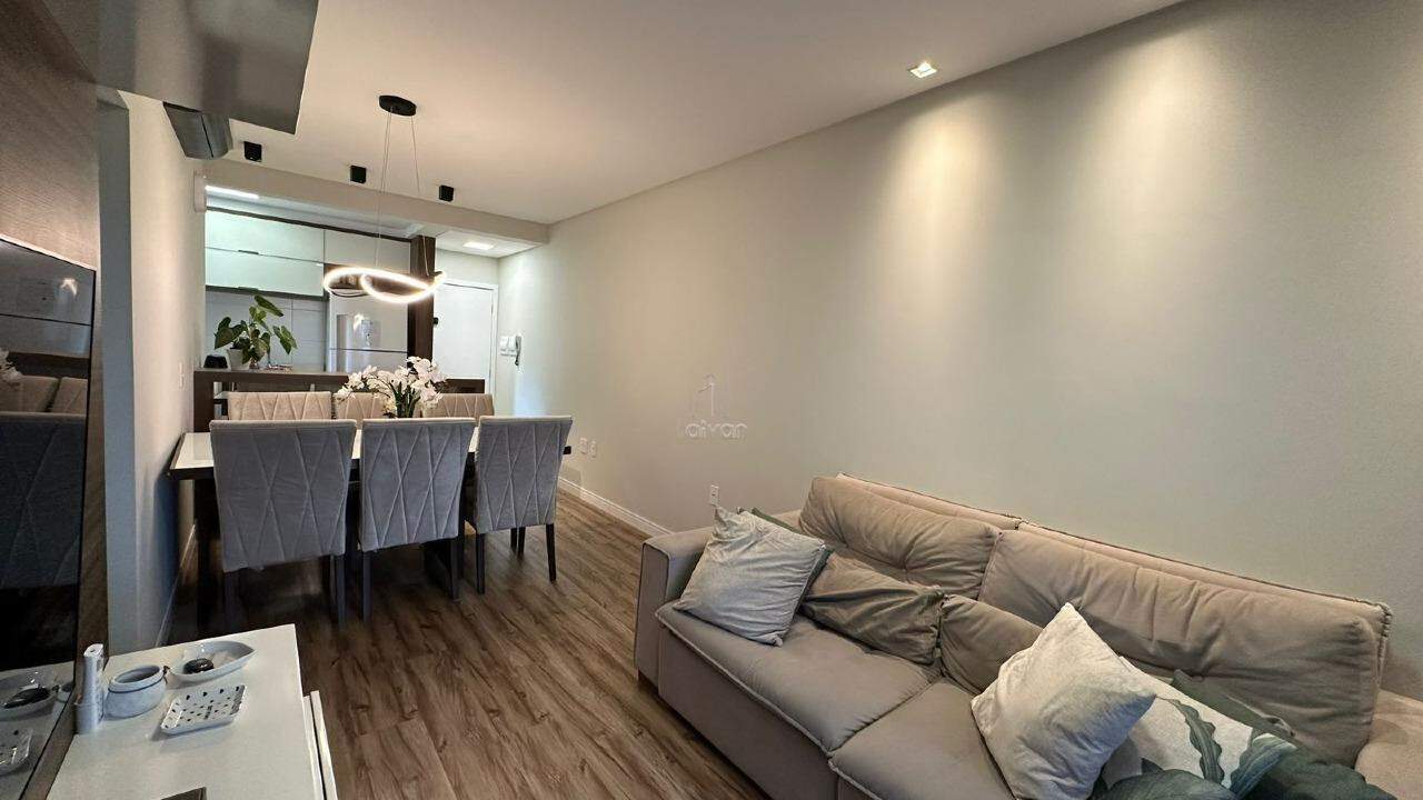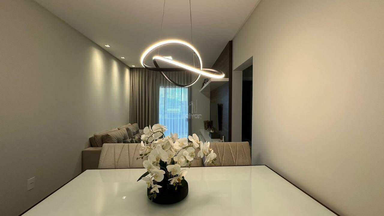 Conta com sala de estar, jantar e cozinha integradas, 1 suíte + 1 quarto, 1 banheiro social, área de serviço, sacada com churrasqueira, 2 vagas, lado a lado.