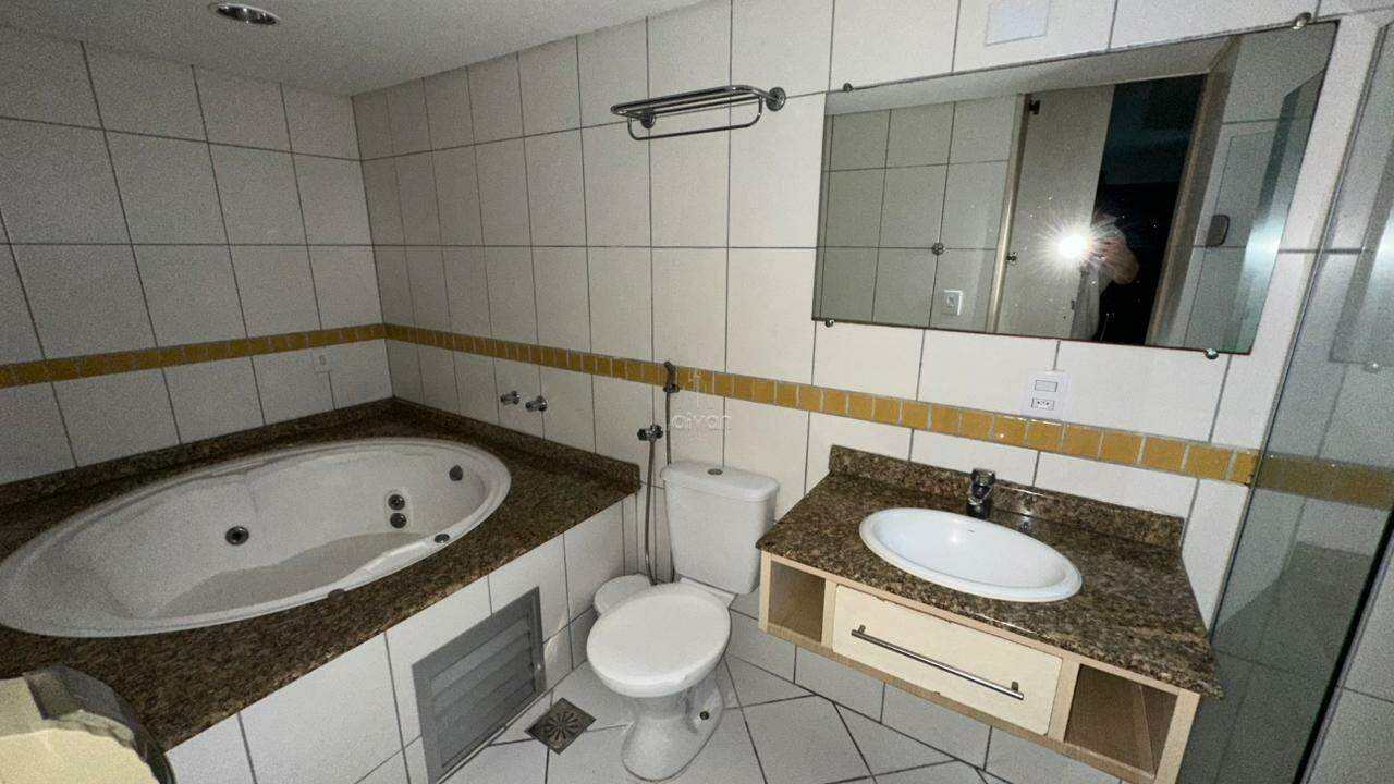 Apartamento em andar alto, conta com sala de estar/TV, cozinha, 1 suíte com banheira de hidromassagem, 1 lavabo, 1 vaga