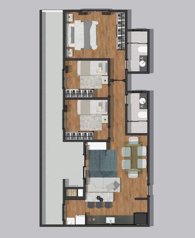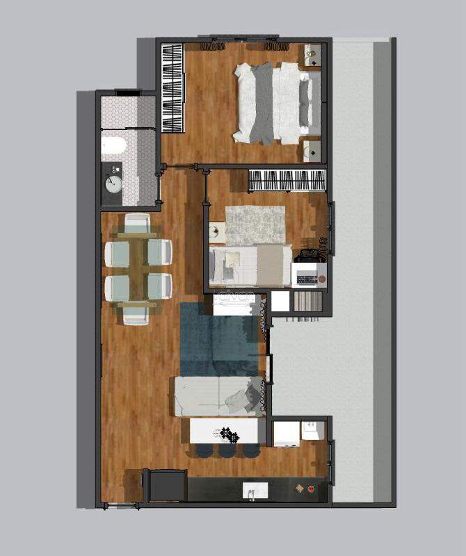 Apartamentos com 1 suíte + 2 quartos ou 2 quartos, a partir de 59,14m² de área privativa, sacada com churrasqueira e 1 vaga.
