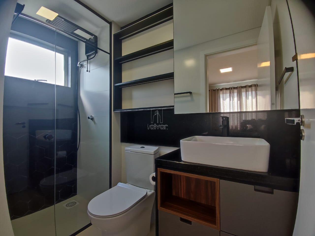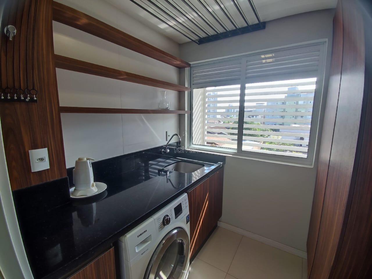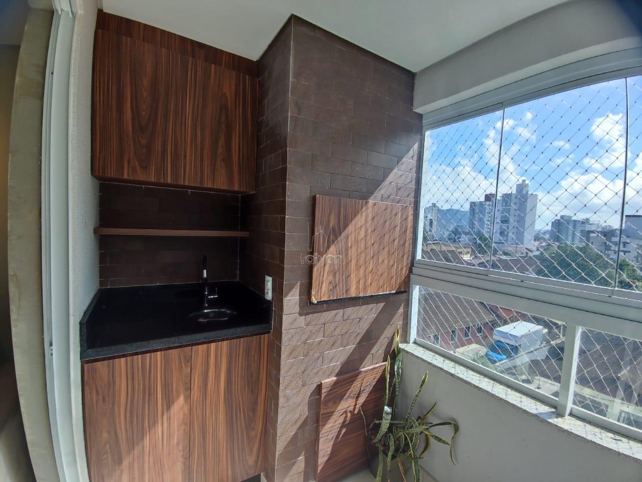 Conta com sala de estar, jantar e cozinha integradas, 1 suíte + 2 quartos, 1 banheiro social, área de serviço, sacada com churrasqueira e 1 vaga.