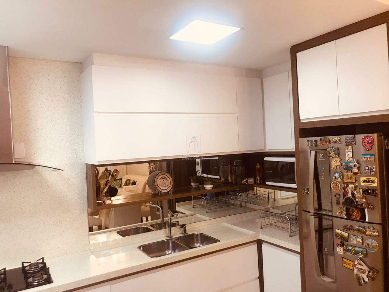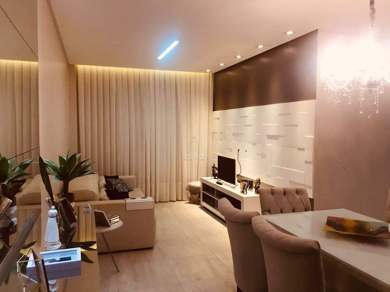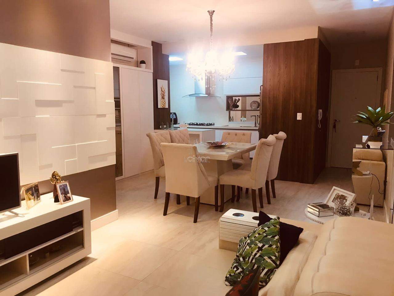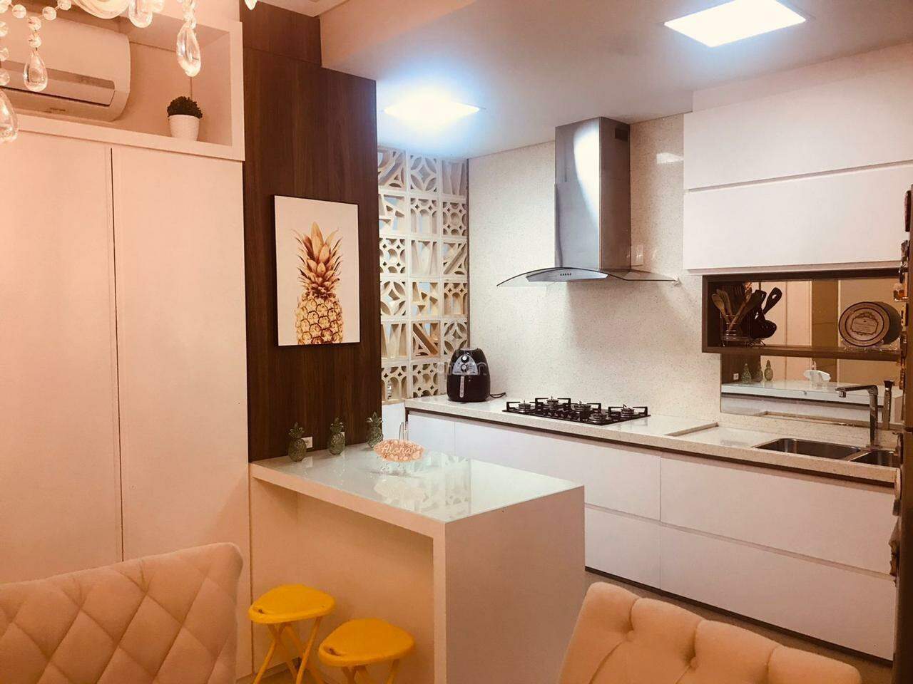 Conta com sala de estar, jantar e cozinha integradas, 1 suíte + 2 quartos, 1 banheiro social, área de serviço e 1 vaga.