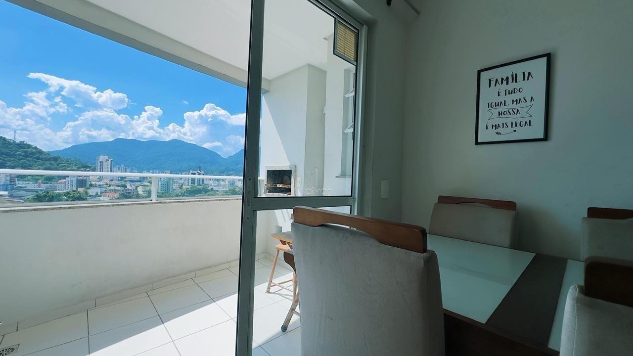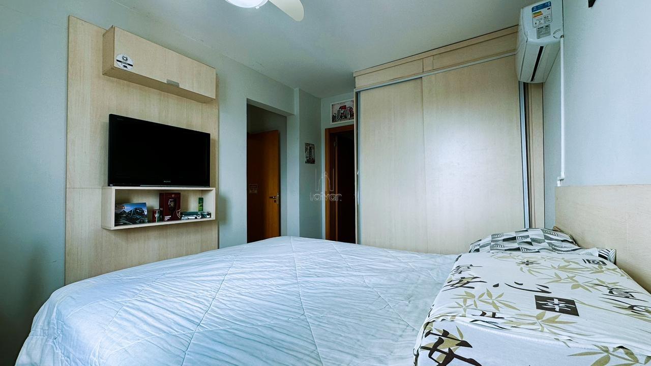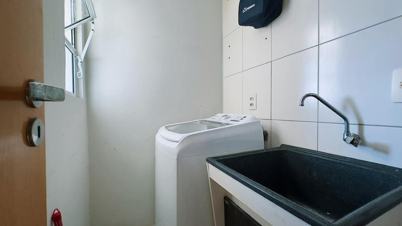 Conta com sala de estar, jantar e cozinha integradas, 1 suíte + 2 quartos, 1 banheiro social, área de serviço, sacada com churrasqueira e 1 vaga.