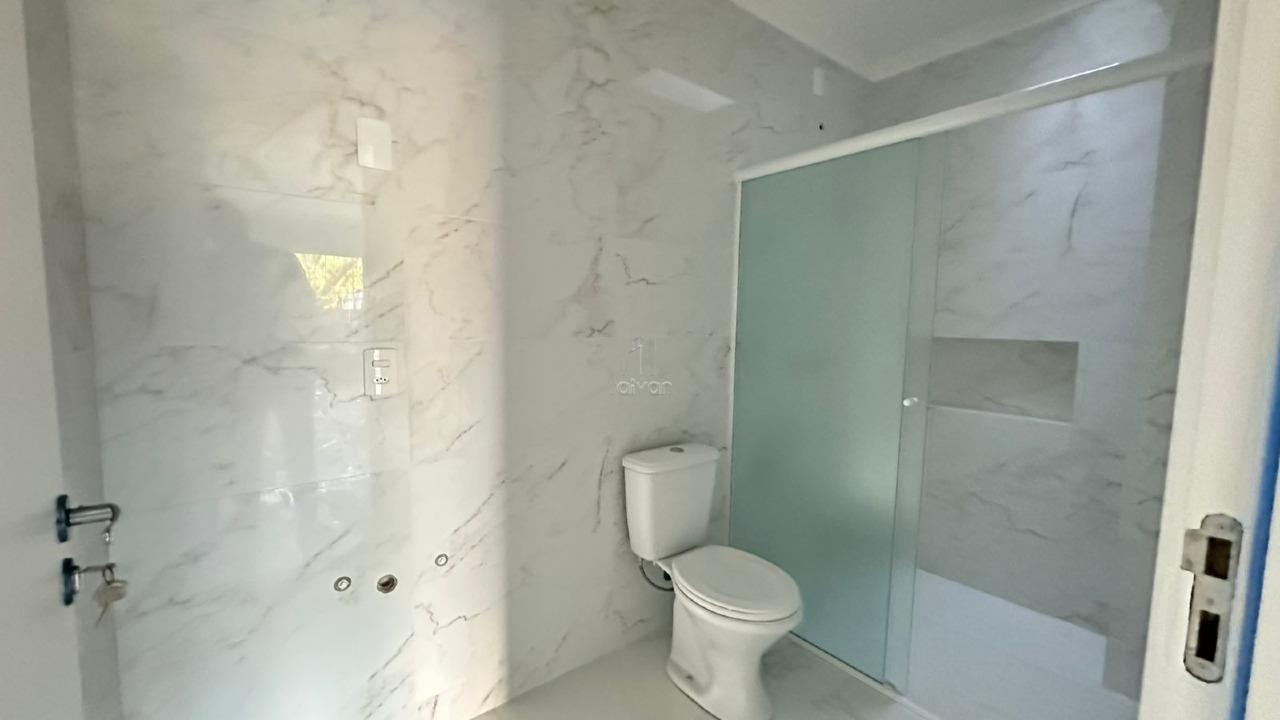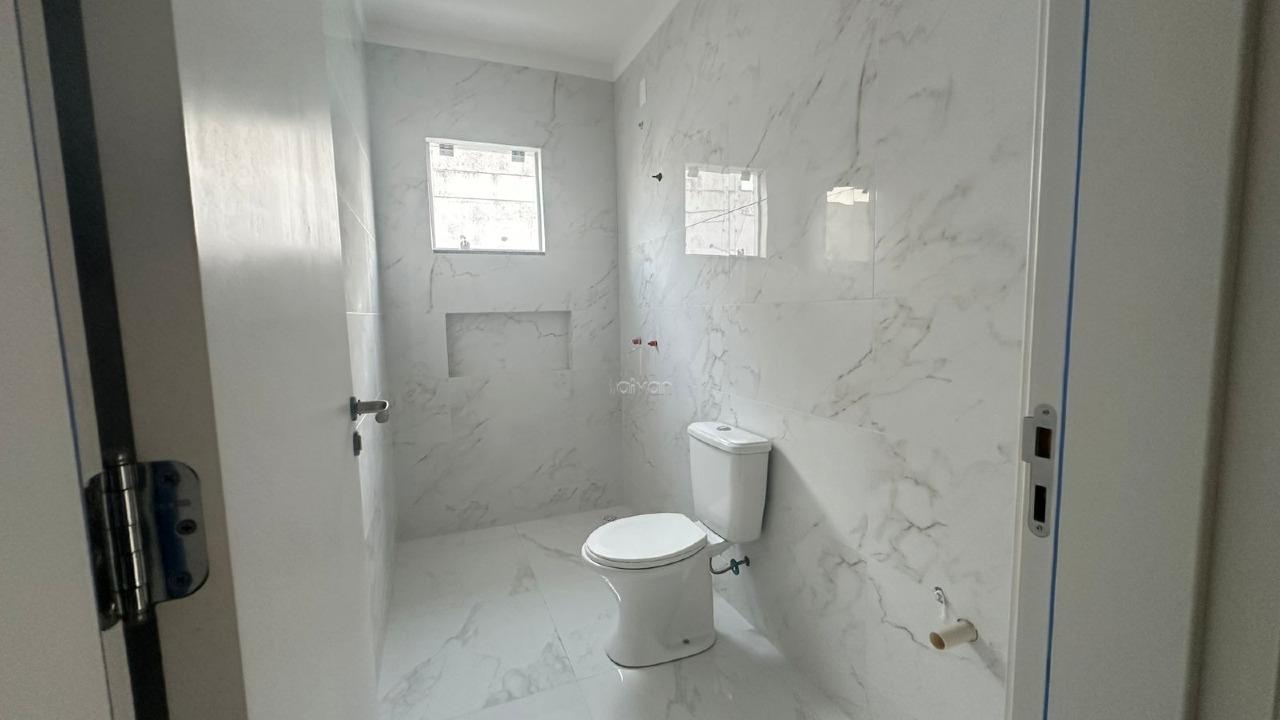 Conta com sala de estar/jantar e copa/cozinha integradas, 1 suíte + 2 quartos, 1 banheiro social, 1 lavabo, área de festas com churrasqueira, área de serviço e 2 vagas.