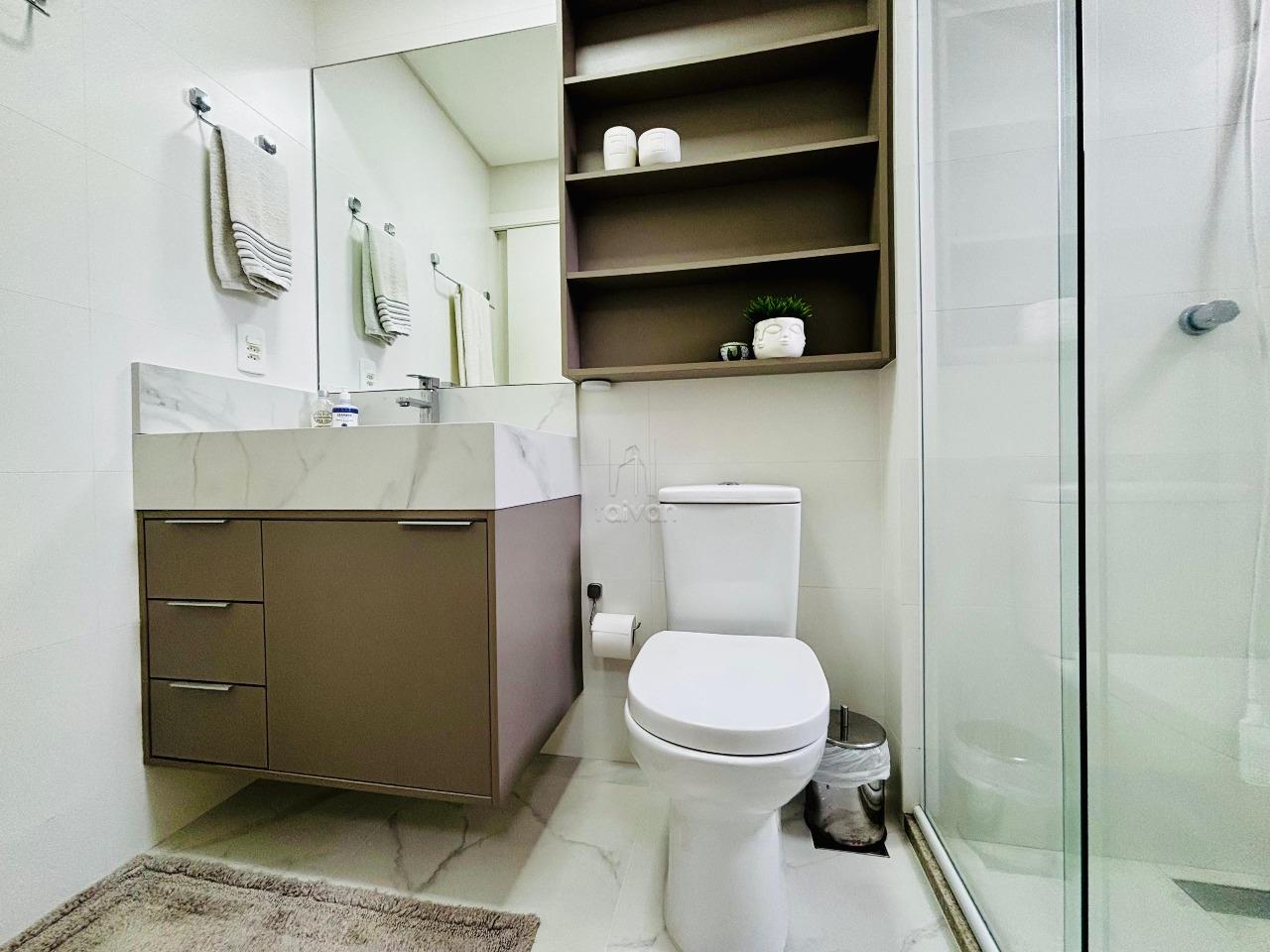Situado em andar alto, o imóvel proporciona uma agradável vista para a montanha, trazendo ainda mais charme aos ambientes.