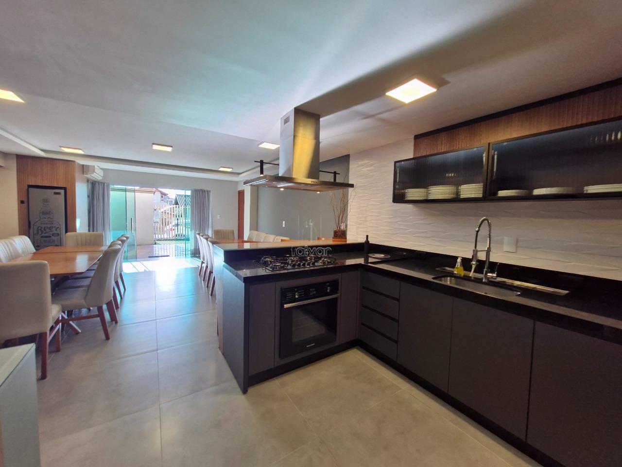 Conta com sala de estar, jantar, cozinha, espaço gourmet com churrasqueira integradas, 1 suíte + 2 quartos, escritório, 1 banheiro social, área de serviço,