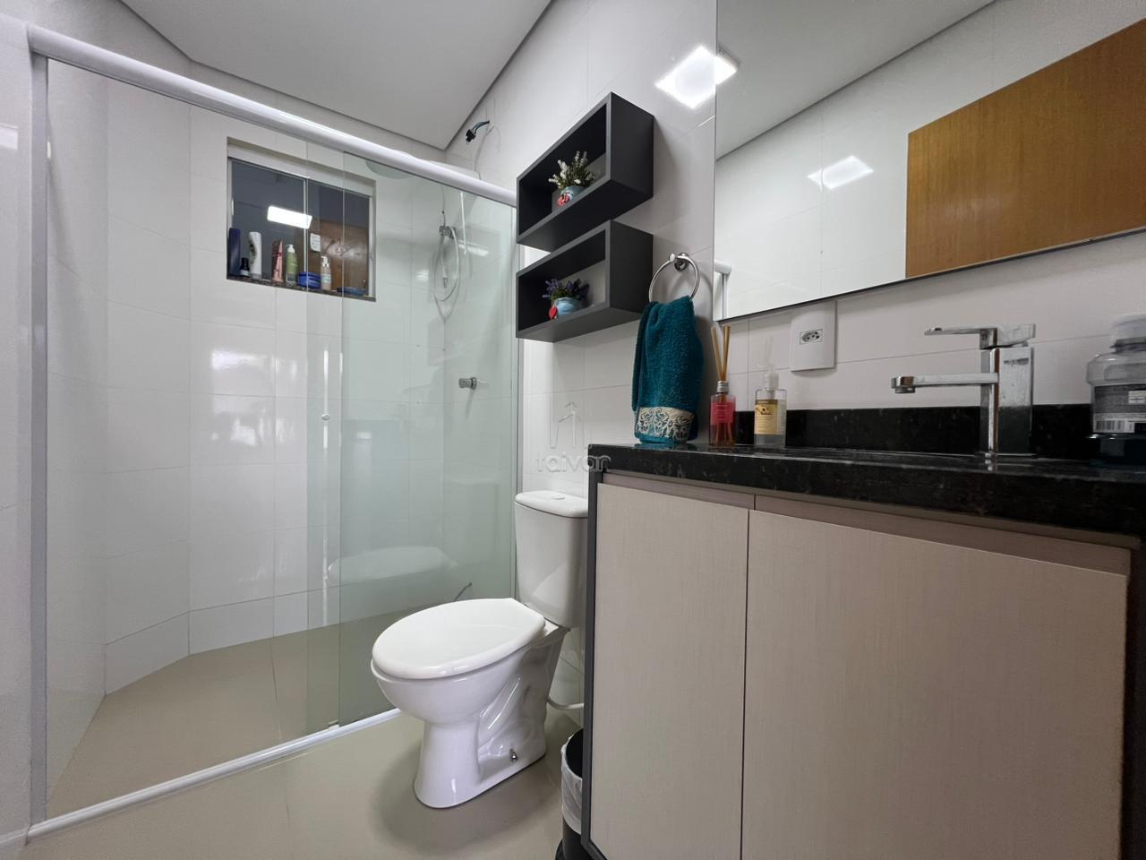Conta com sala de estar, jantar, cozinha e churrasqueira integradas, 2 quartos, sendo 1 com closet, 1 banheiro, área de serviço e 1 vaga.
