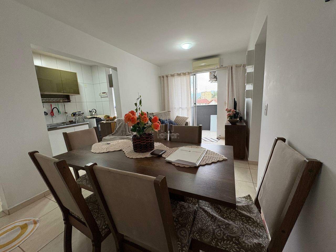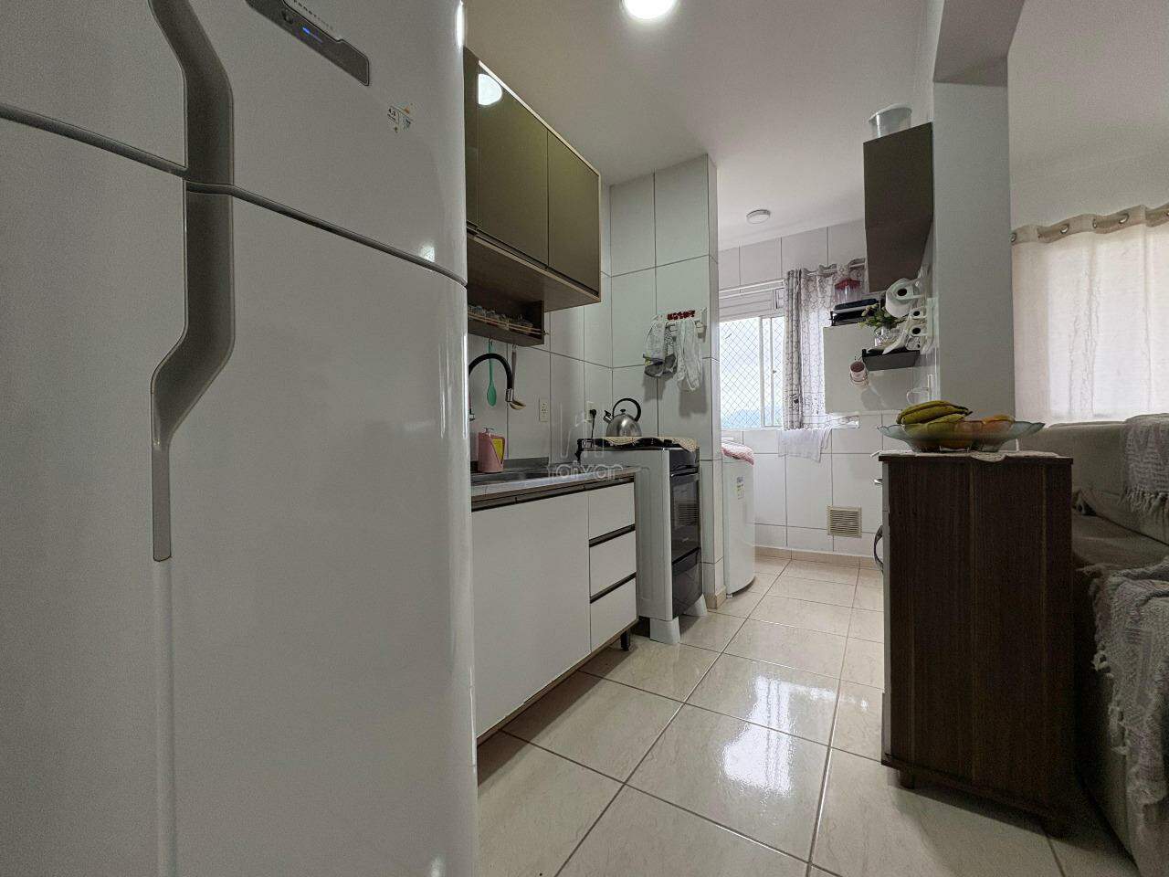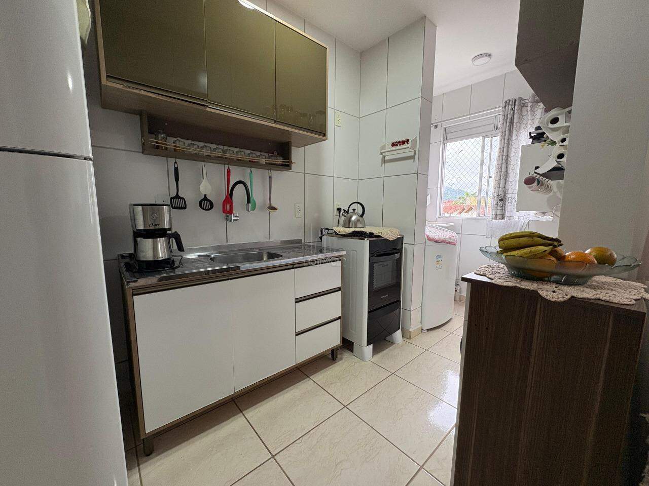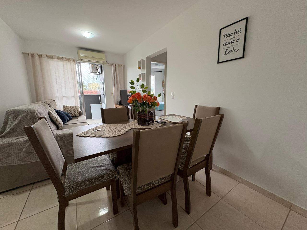 Imóvel conta com sala de TV e jantar integradas, cozinha, 2 quartos, 1 banheiro, área de serviço, sacada com churrasqueira e 1 vaga.