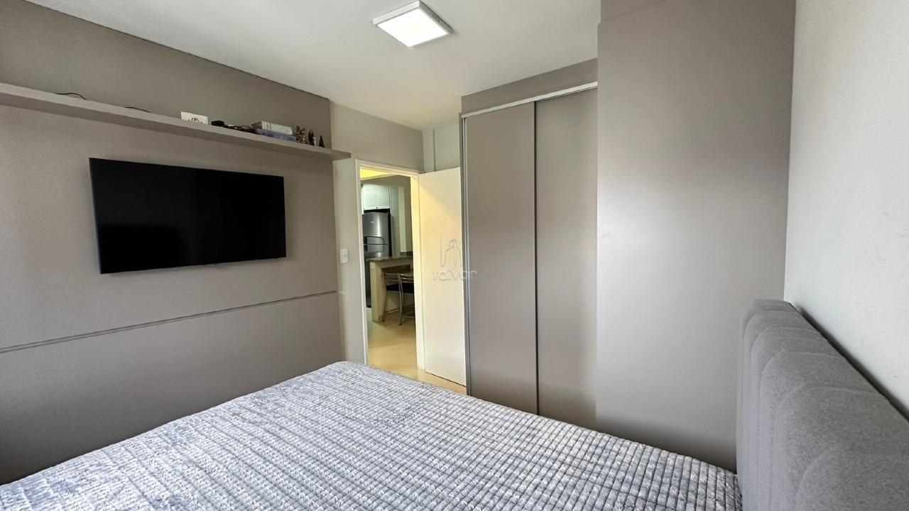 Conta com sala de estar, copa/cozinha integradas, 2 quartos, 1 banheiro, área de serviço e 1 vaga.