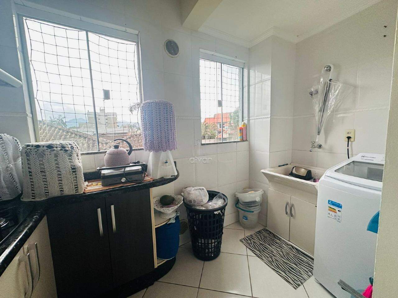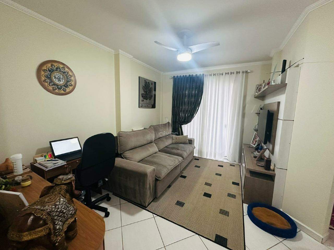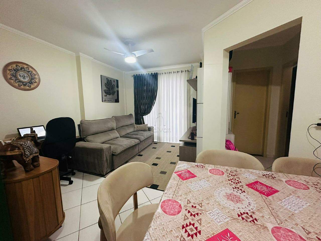 Conta com sala estar e copa/cozinha integradas, 2 quartos, 1 banheiro, área de serviço, sacada com churrasqueira e 1 vaga.