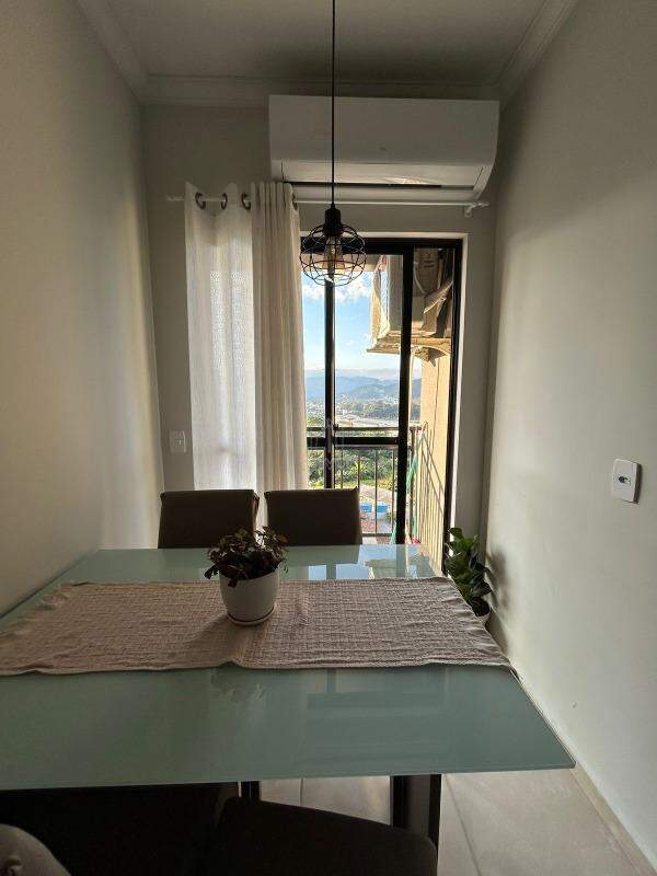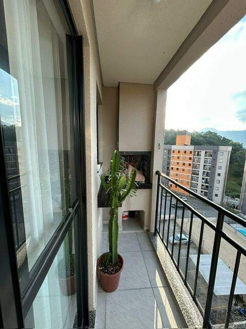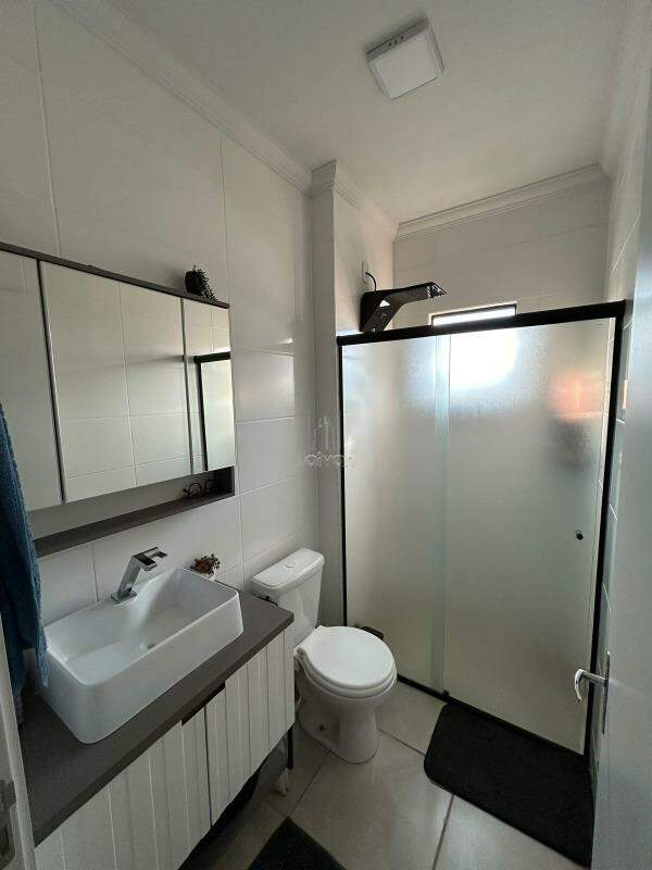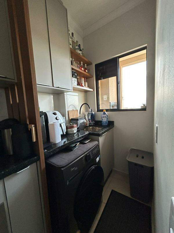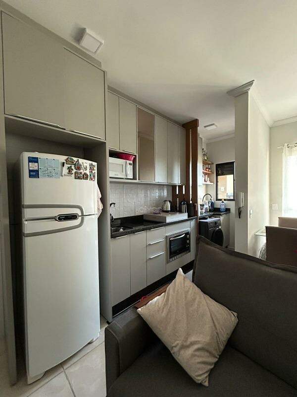 Conta com sala de estar, jantar, copa/cozinha integradas, 2 quartos, 1 banheiro, área de serviço, sacada com churrasqueira e 1 vaga.