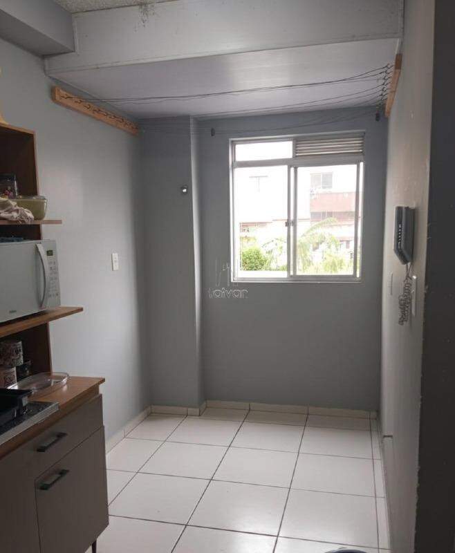 Conta com sala de estar e copa/cozinha integradas, 2 quartos, 1 banheiro, área de serviço e 1 vaga.