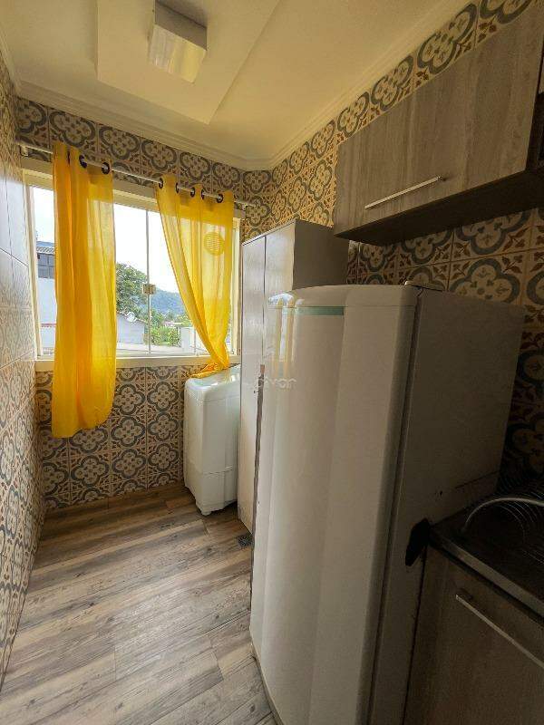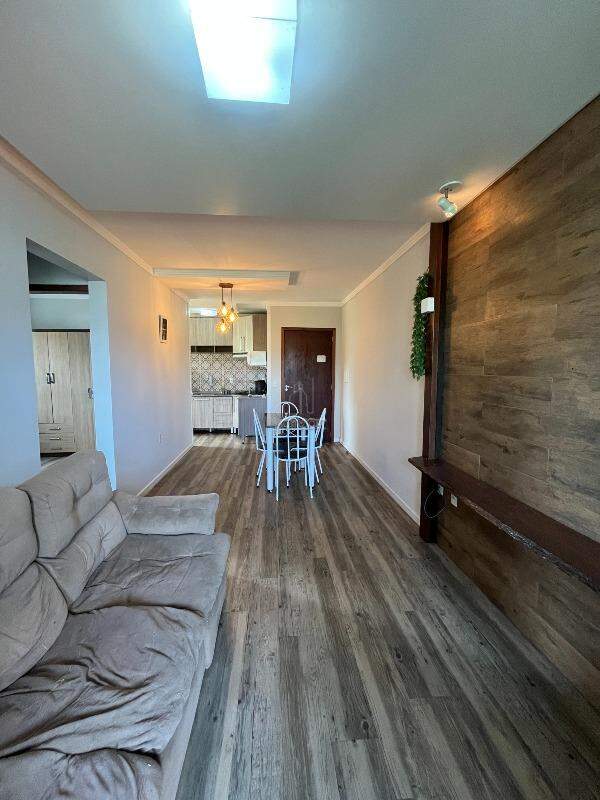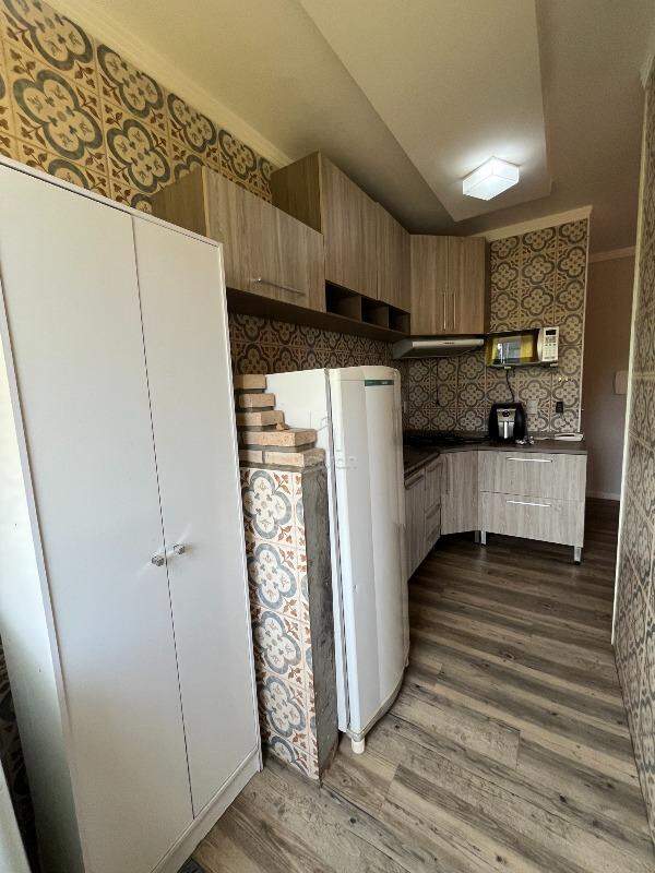 Conta com sala de TV e copa/cozinha integradas, 2 quartos, 1 banheiro, área de serviço, sacada com churrasqueira e 1 vaga.