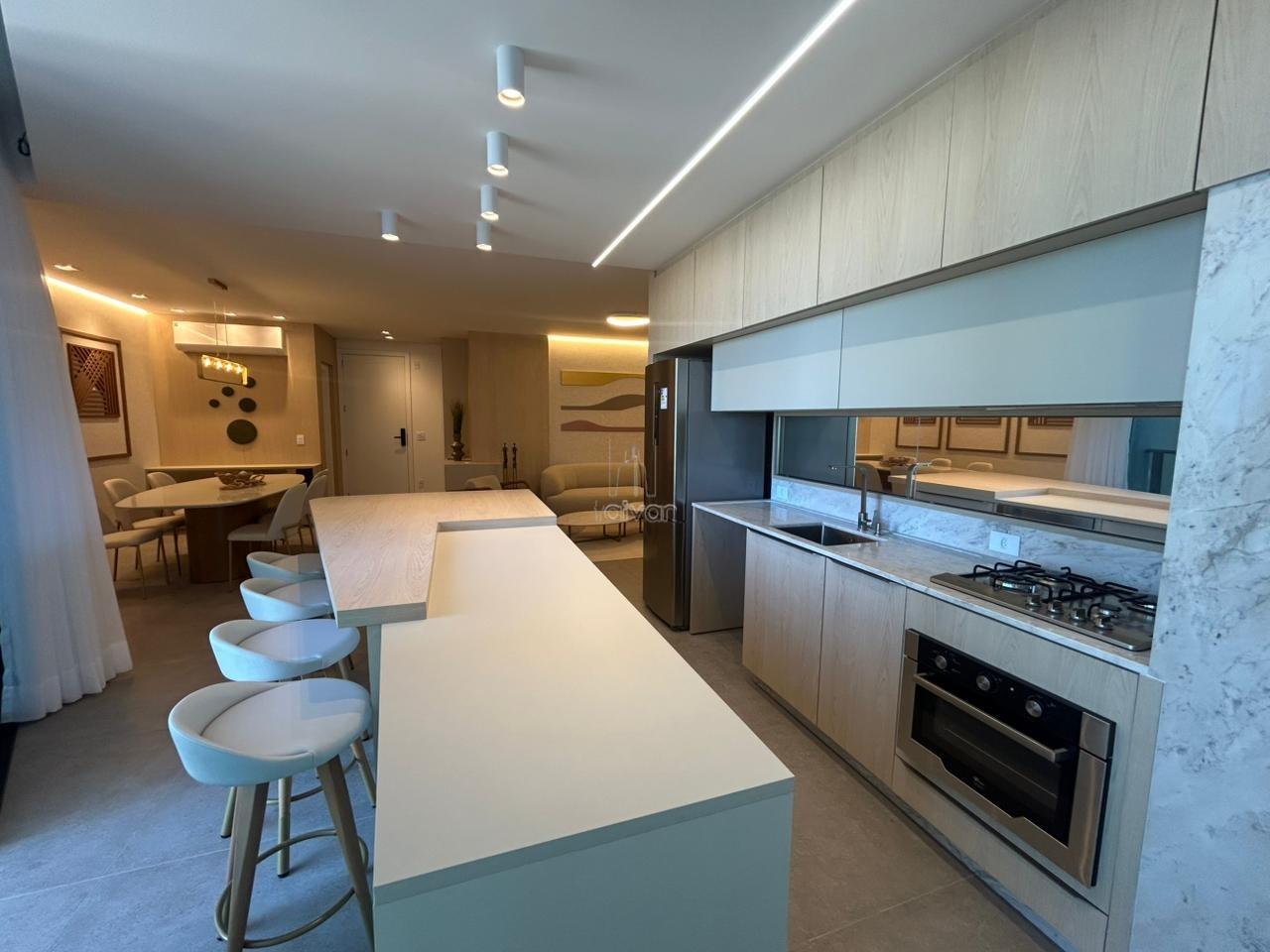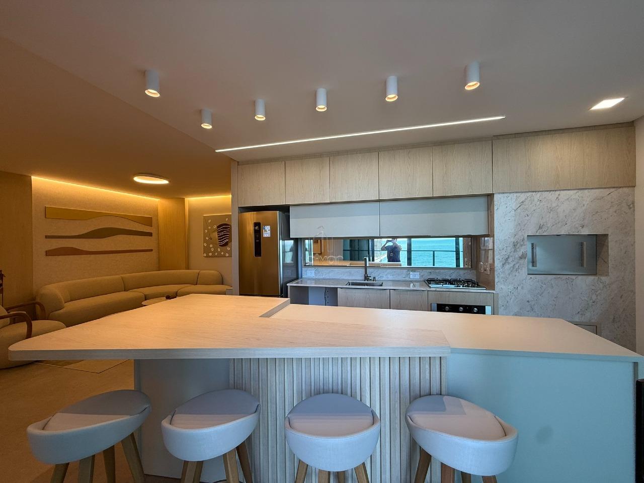 Apartamento em andar alto, com vista para o mar, conta com sala de estar, jantar, cozinha com churrasqueira integradas, 3 suítes, 1 lavabo, área de serviço, sacada e 2 vagas.