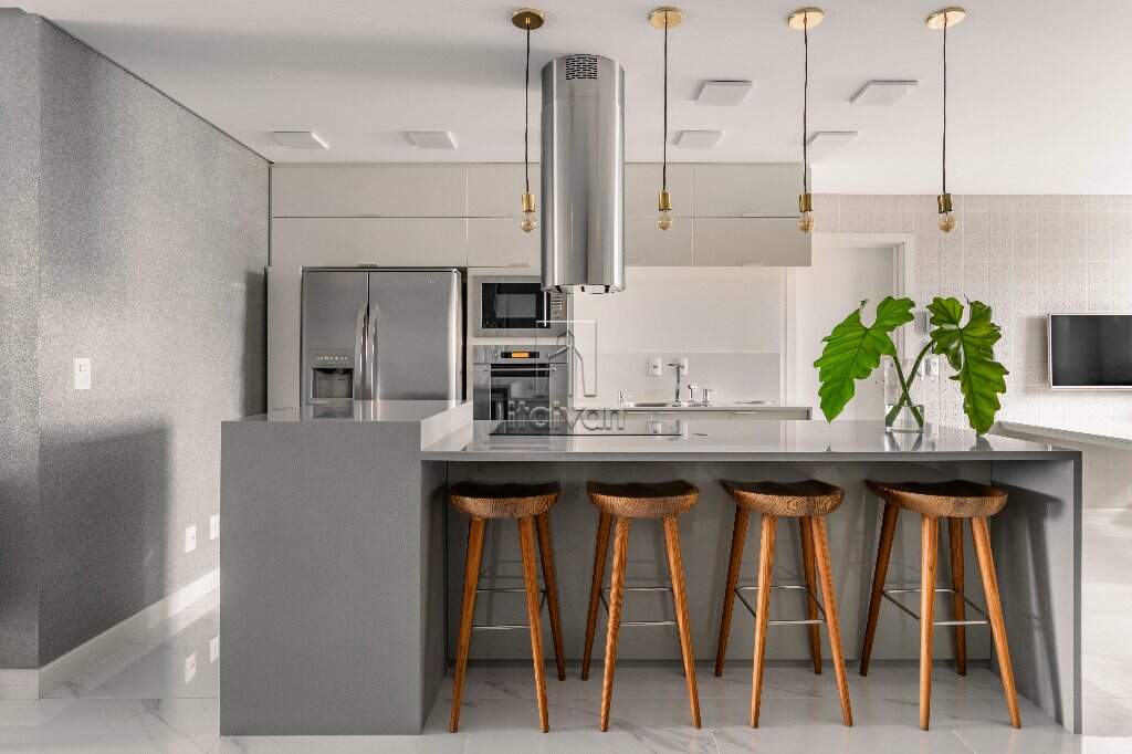 Esse imóvel conta com 3 suítes; 5 banheiros, sendo 1 lavabo e 1 lavabo de serviço.