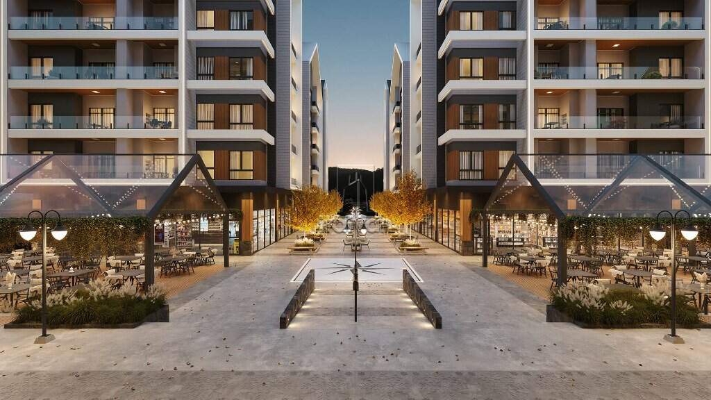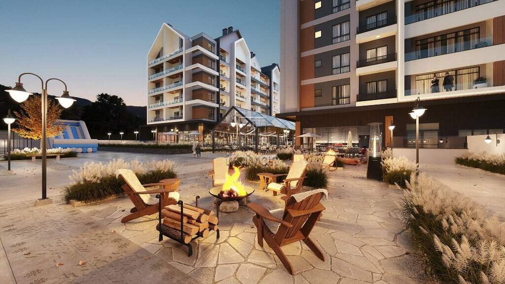 Contará com área comercial no térreo de lazer e alimentação com 27 lojas segmentadas, área temática com 620m², Espaço Sunset View (vista do pôr do sol), palco, praças de fogo, paisagismo de serra, além de outras amenidades.