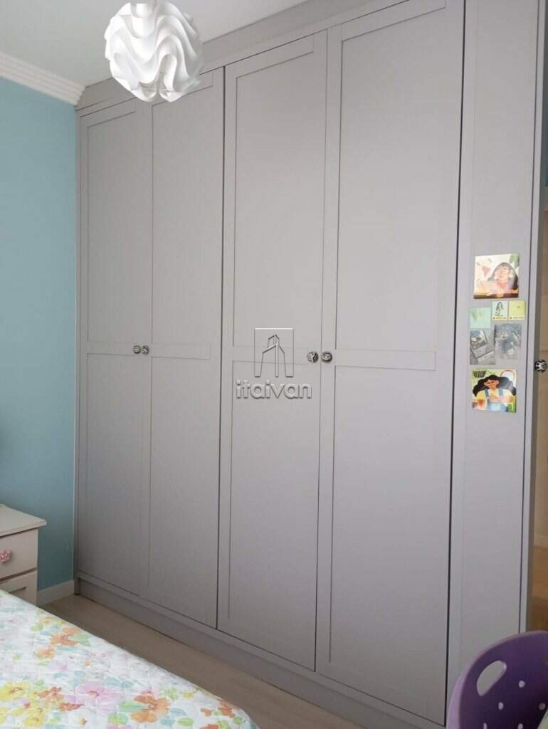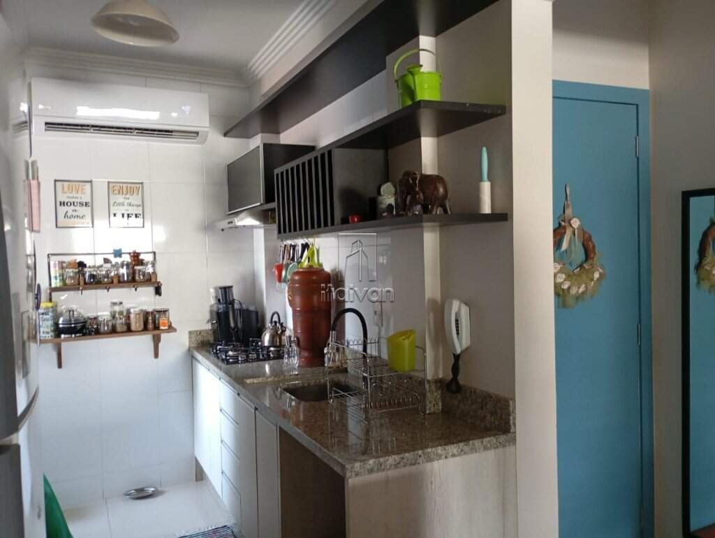 01 Suíte + 02 quartos, sala de estar, cozinha sob medida, sacada com churrasqueira, 01 banheiro social e 02 vagas de garagem.