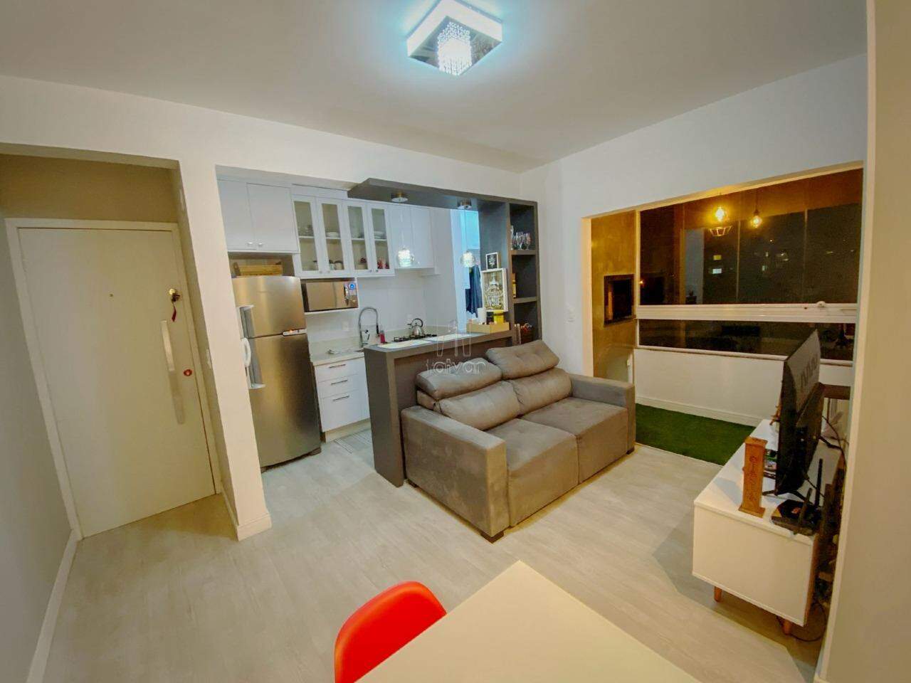 Descrição do imóvel: 2 quartos, sala de estar e jantar, cozinha, área de serviço, bwc social, sacada com churrasqueira e 1 vaga de garagem.