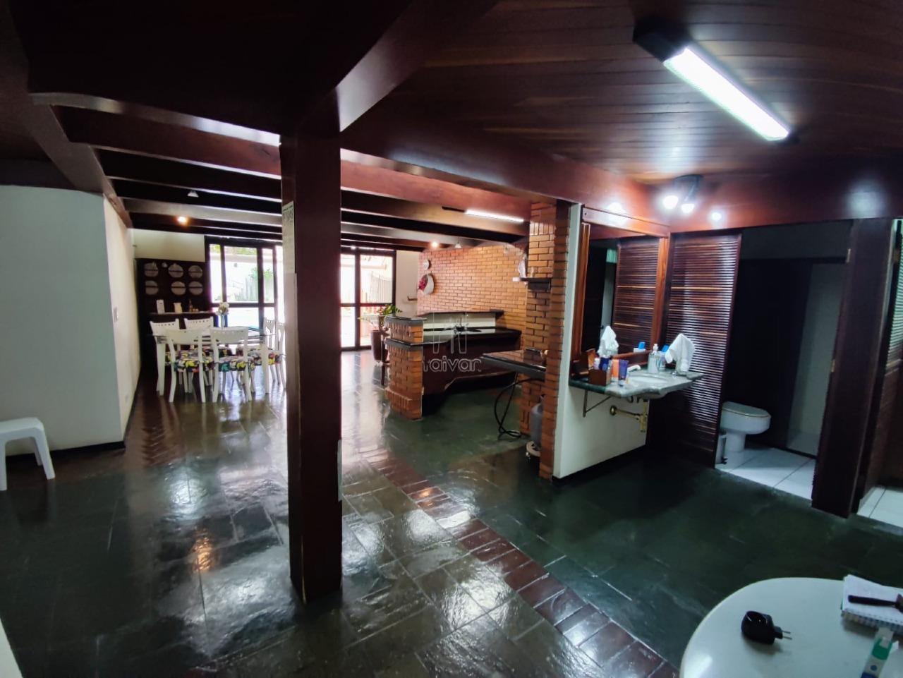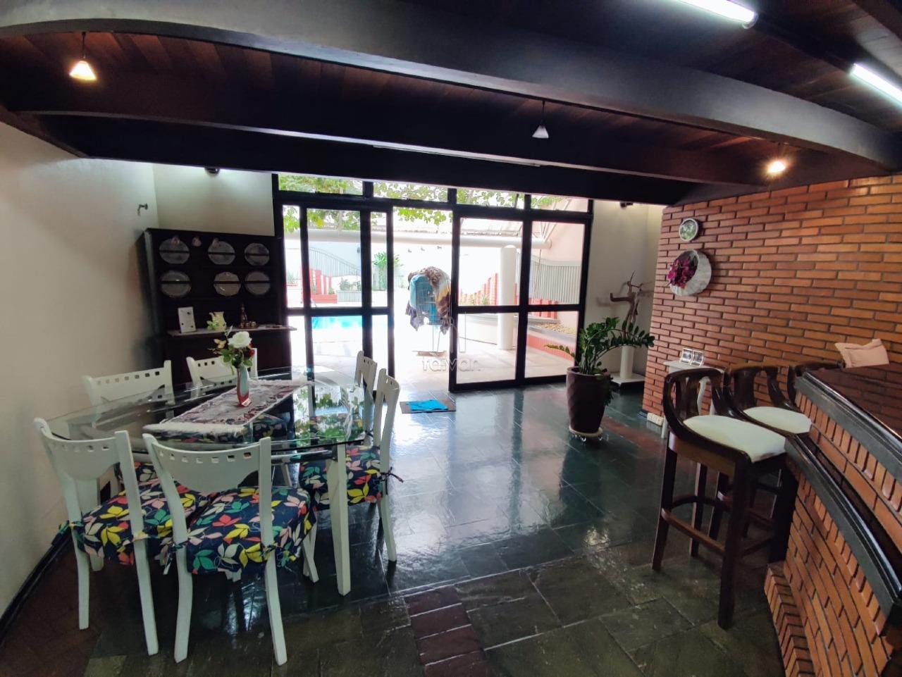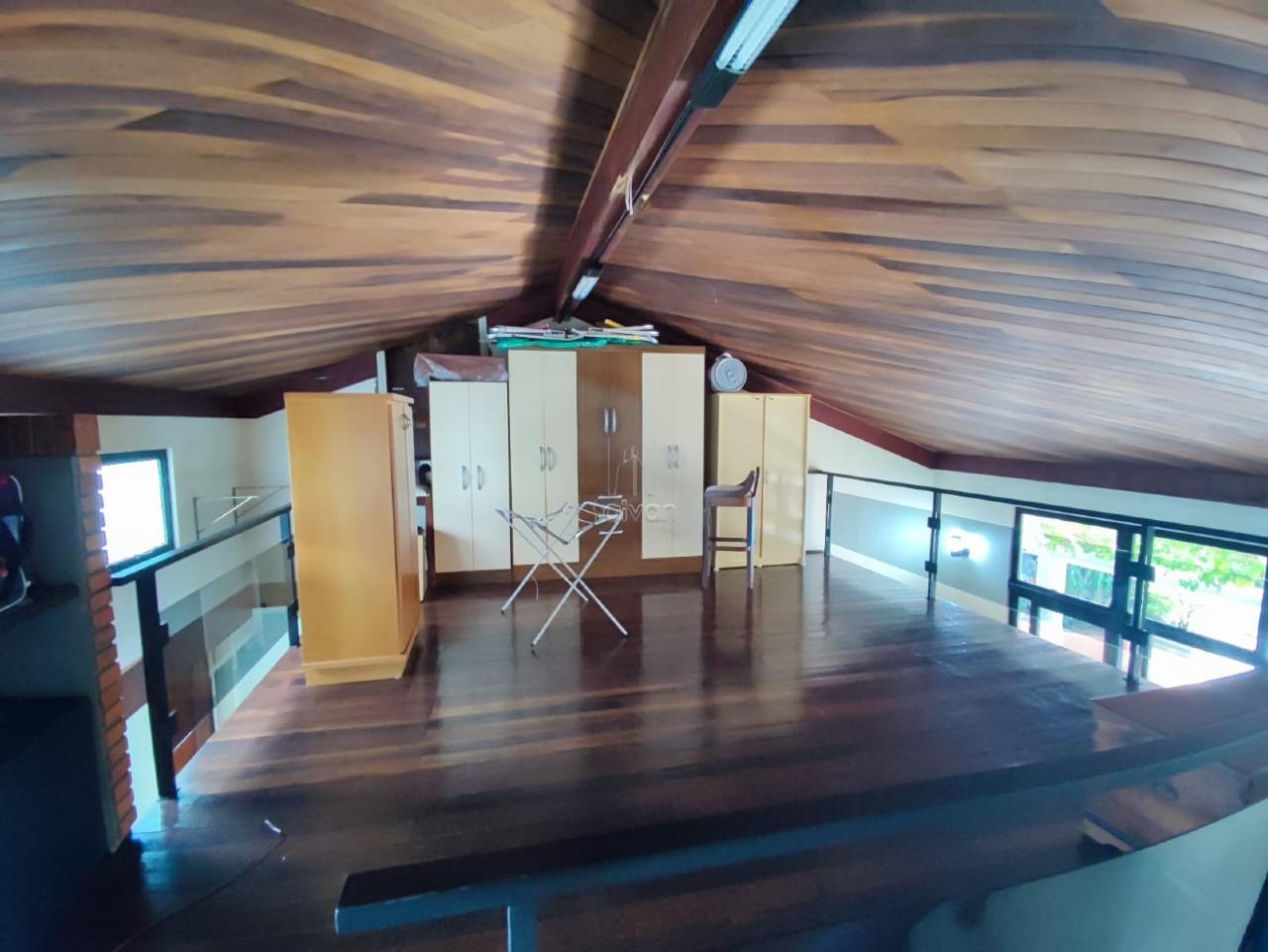 Dispõe de sala de estar com lareira, sala de jantar, copa/cozinha, 1 suíte + 2 quartos, 1 banheiro social, 1 lavabo, área de serviço e mezanino. Conta ainda com área de festas equipada com churrasqueira, amplo quintal e piscina.