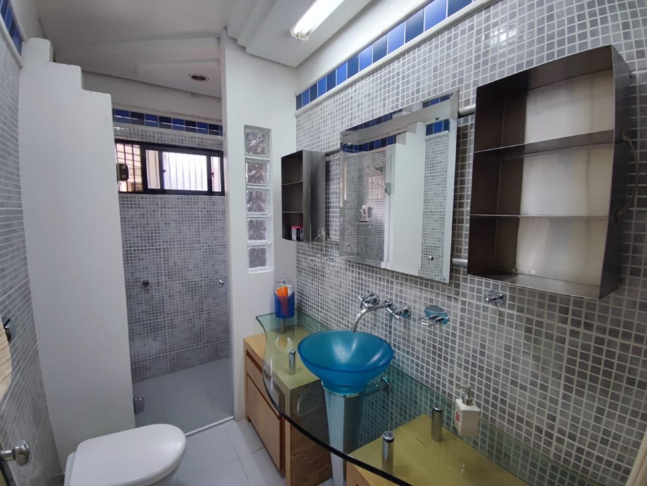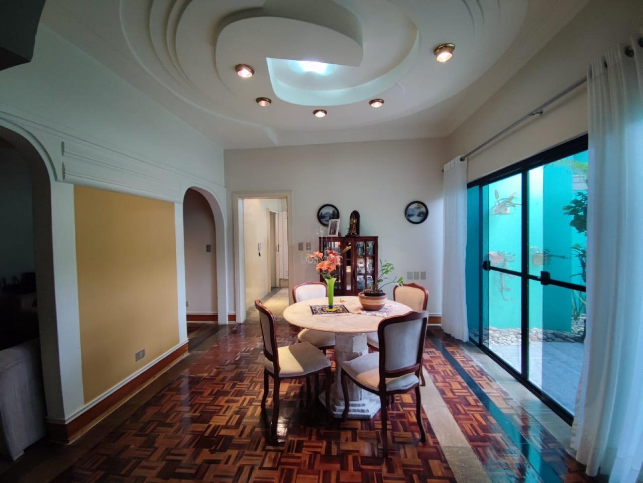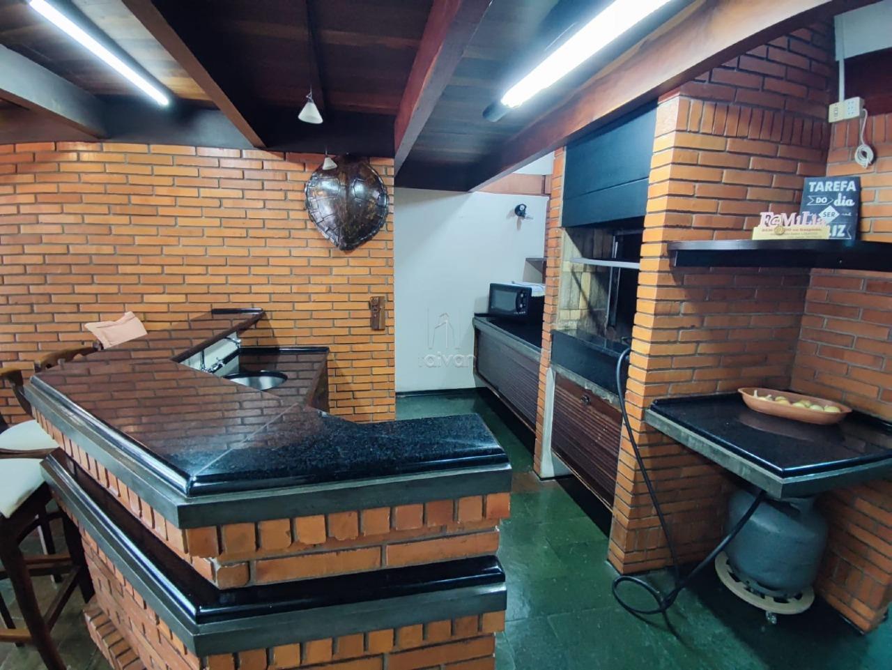 Dispõe de sala de estar com lareira, sala de jantar, copa/cozinha, 1 suíte + 2 quartos, 1 banheiro social, 1 lavabo, área de serviço e mezanino. Conta ainda com área de festas equipada com churrasqueira, amplo quintal e piscina.