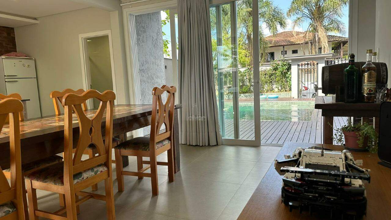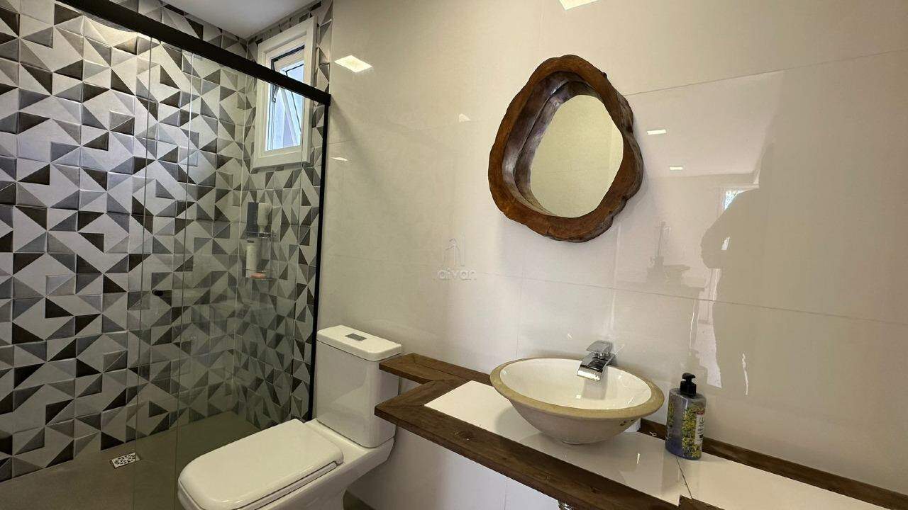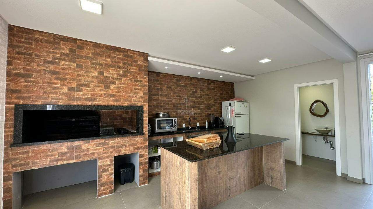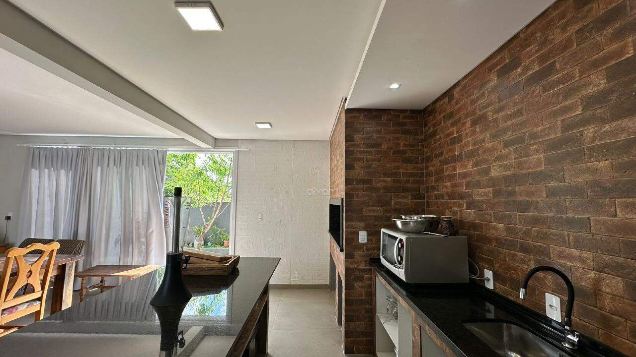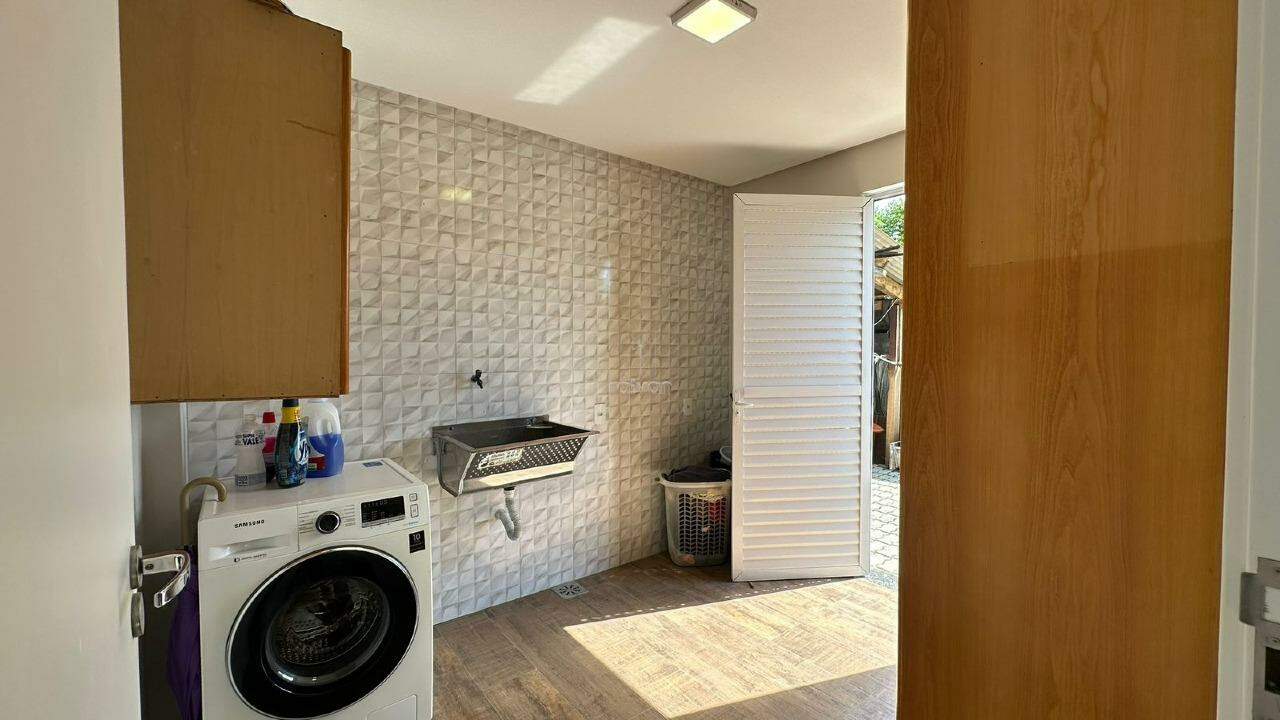 Conta com sala de estar e cozinha integradas, 1 suíte, 2 quartos, 1 banheiro social, 1 lavabo, área de festas com churrasqueira, área de serviço, quintal com piscina e 2 vagas.