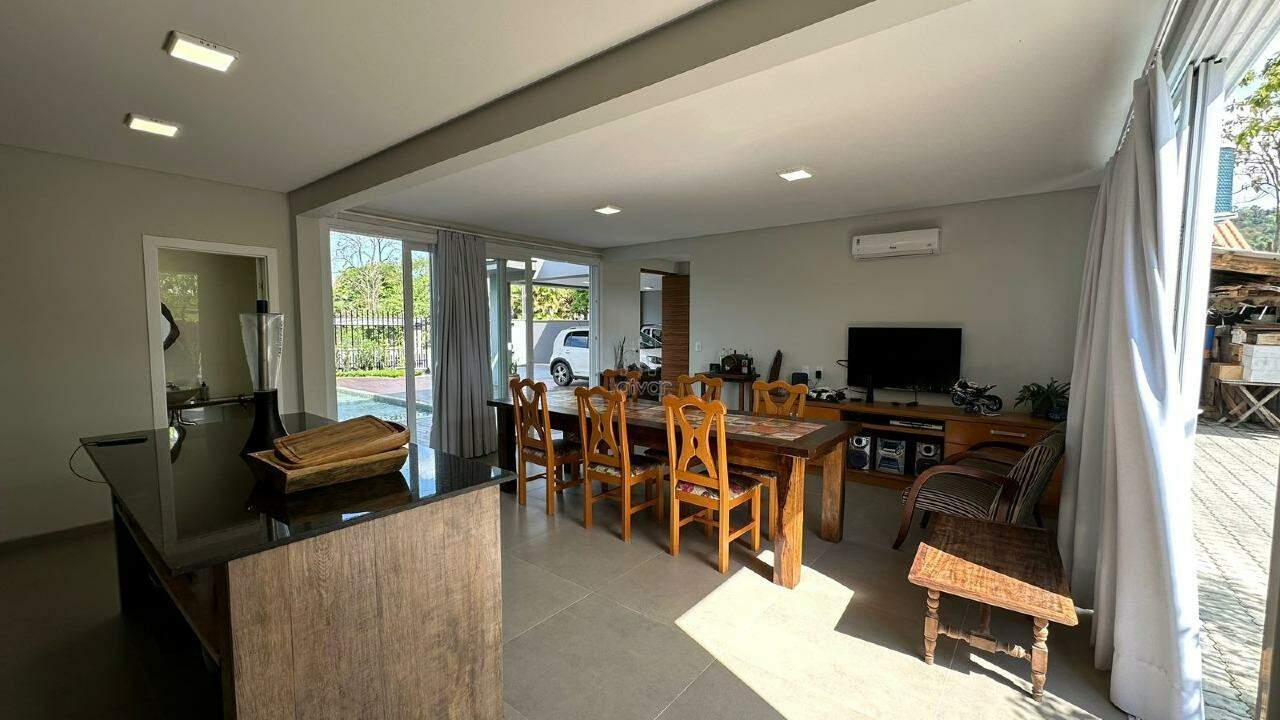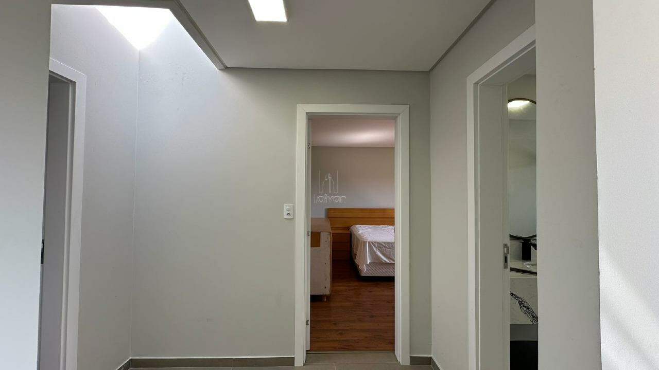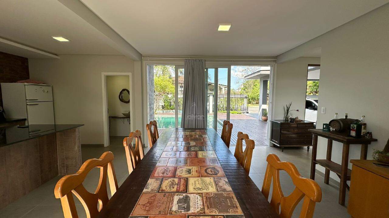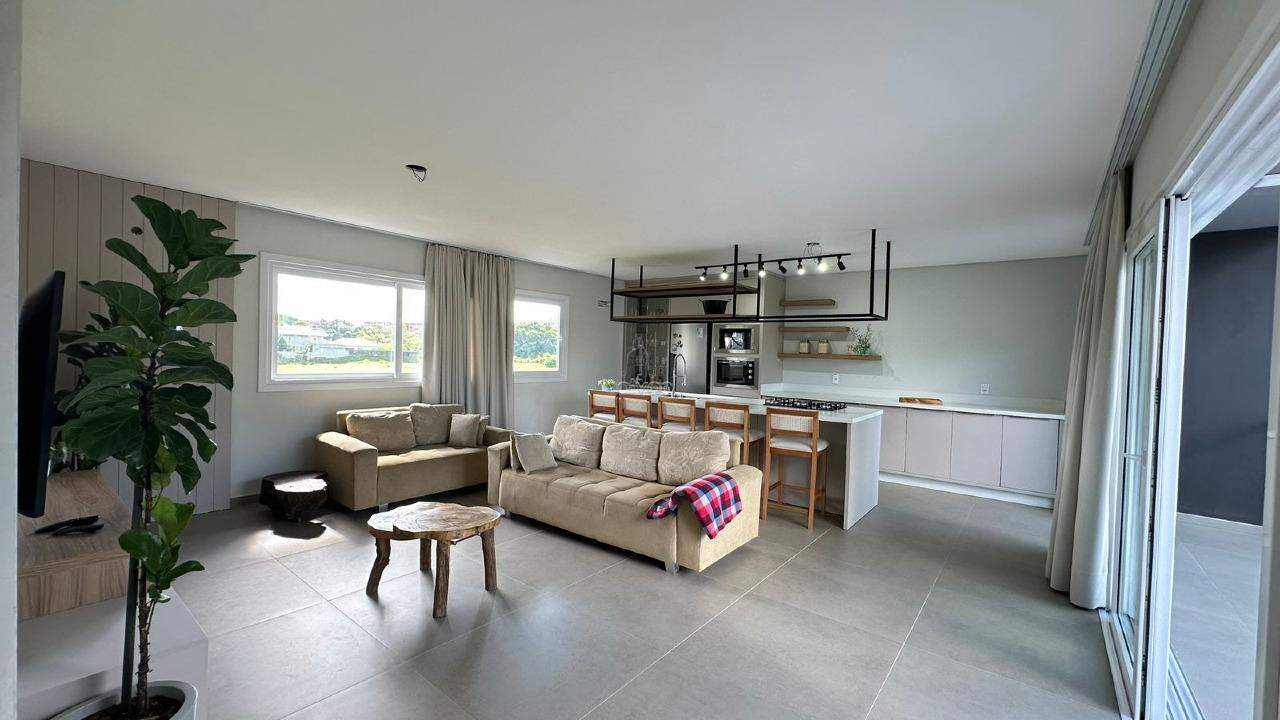 Conta com sala de estar e cozinha integradas, 1 suíte, 2 quartos, 1 banheiro social, 1 lavabo, área de festas com churrasqueira, área de serviço, quintal com piscina e 2 vagas.