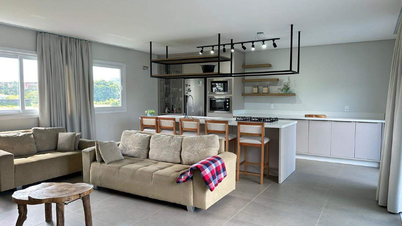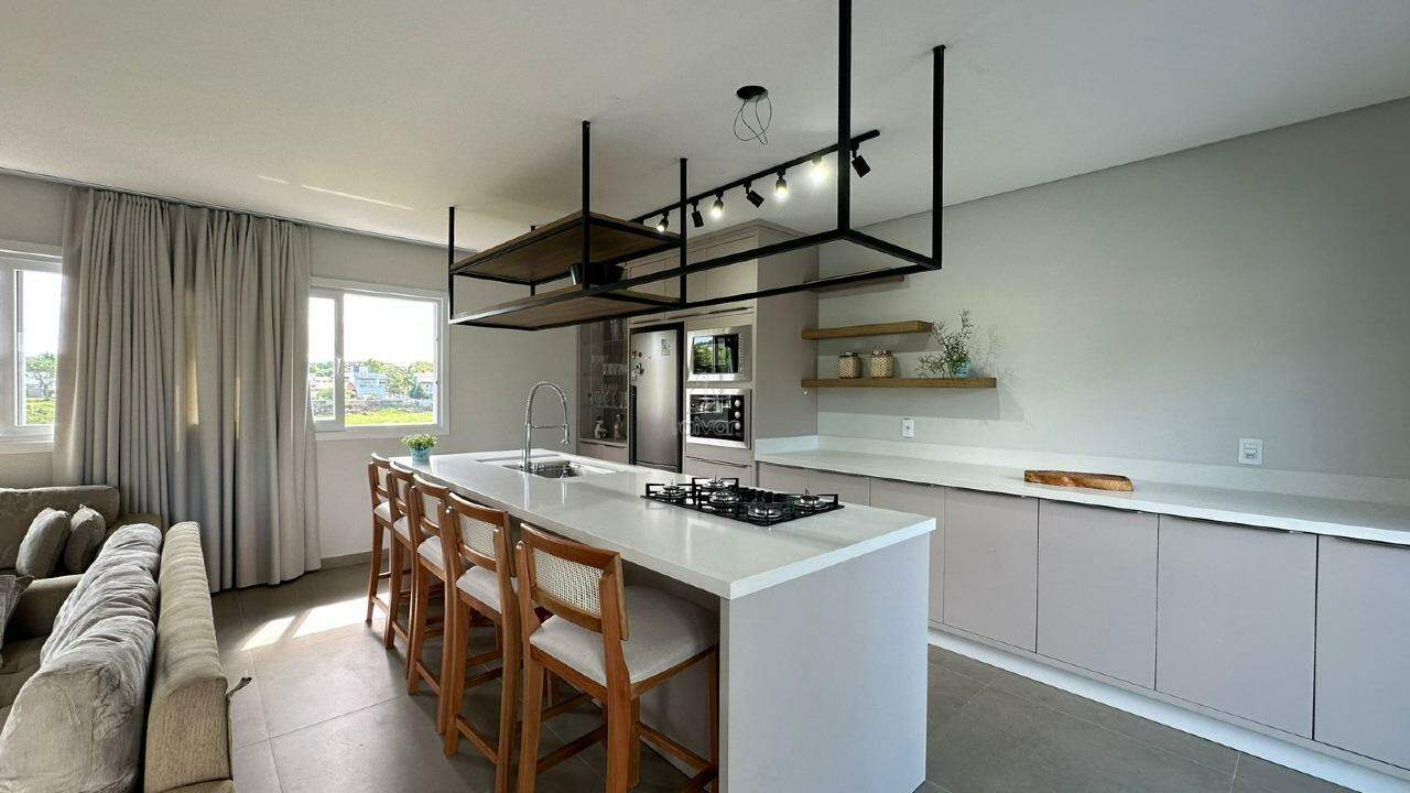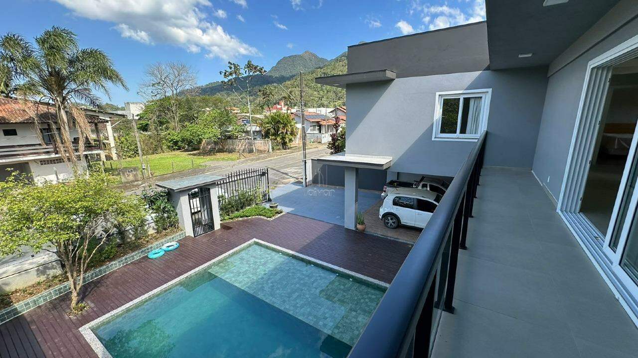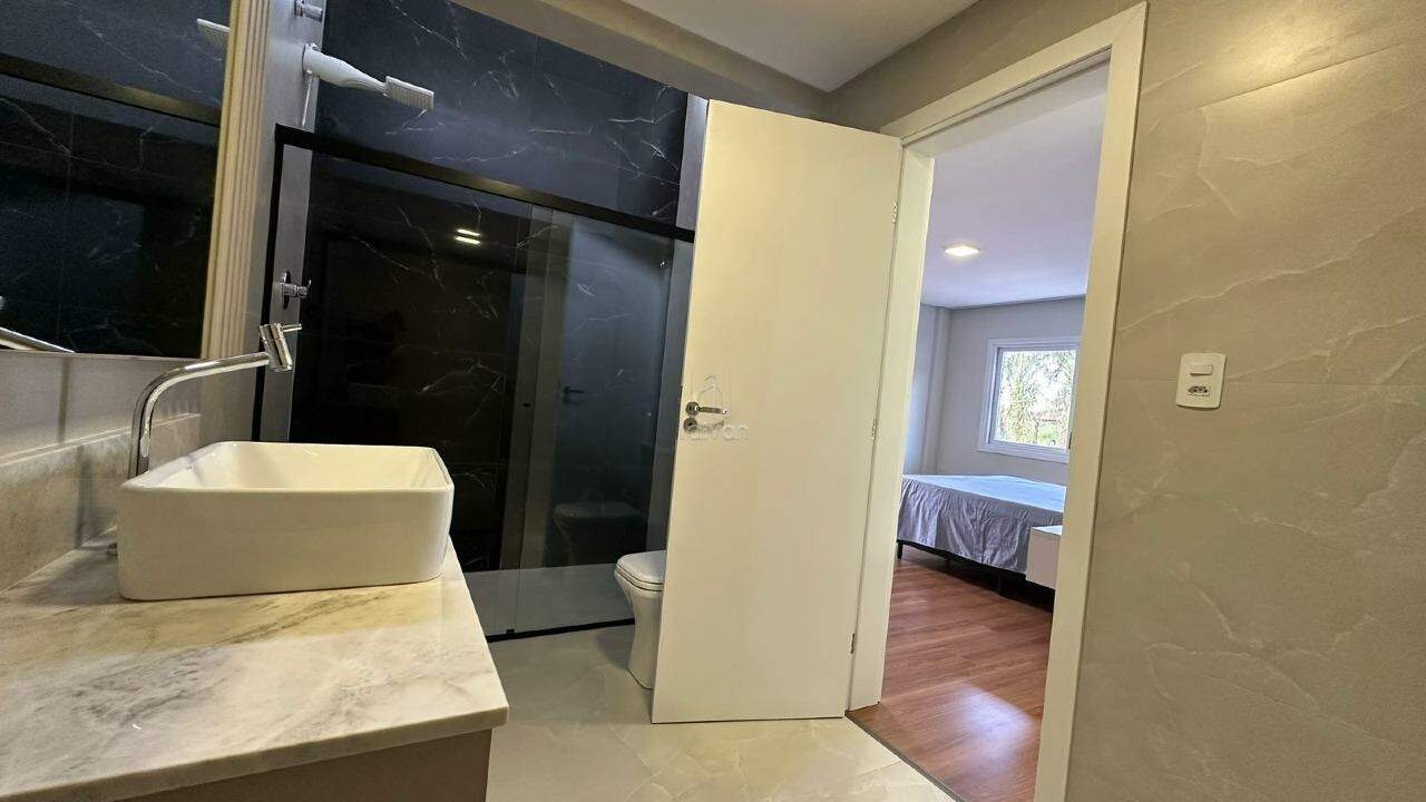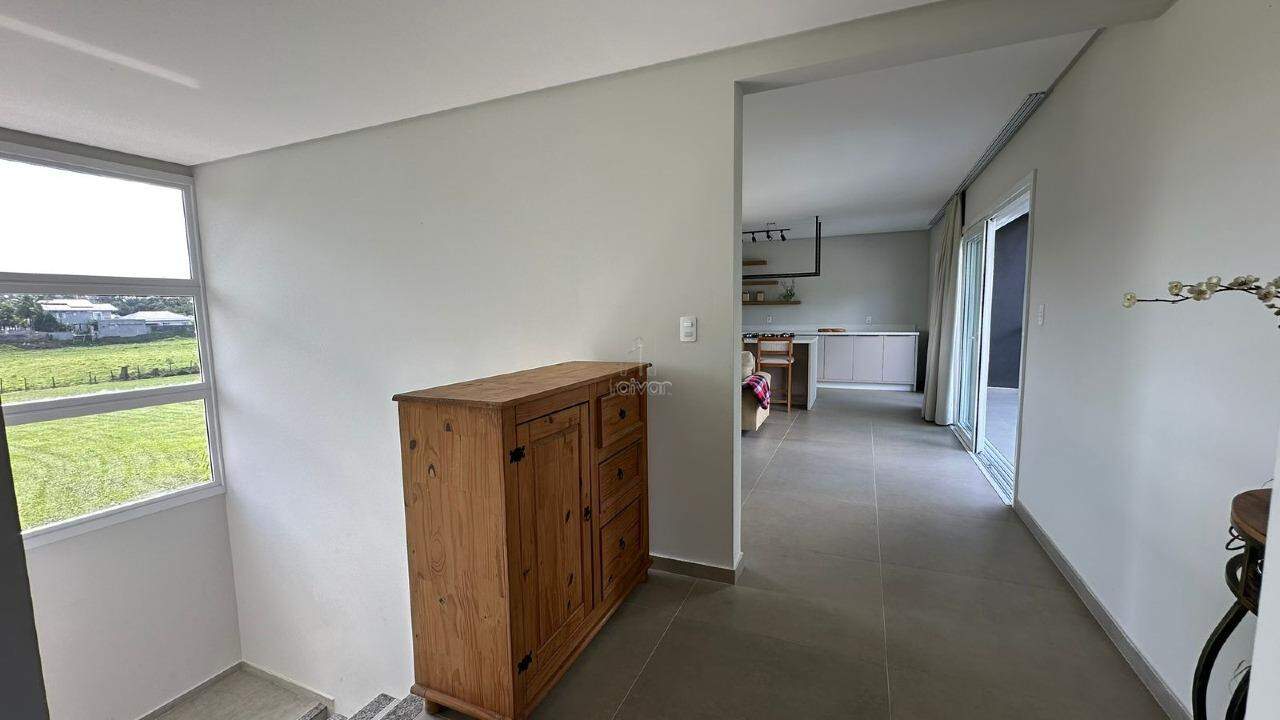 Conta com sala de estar e cozinha integradas, 1 suíte, 2 quartos, 1 banheiro social, 1 lavabo, área de festas com churrasqueira, área de serviço, quintal com piscina e 2 vagas.