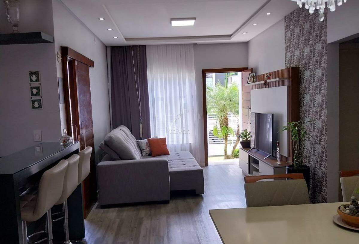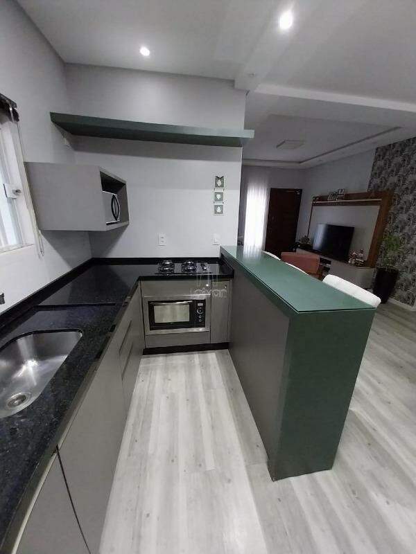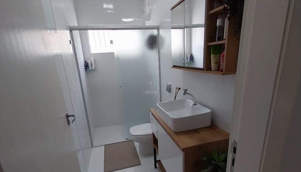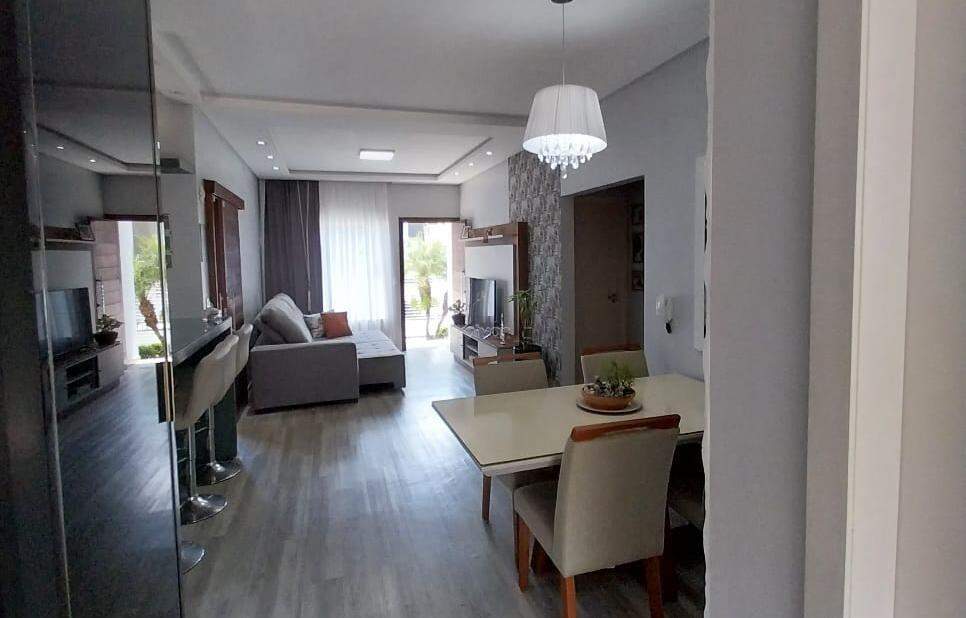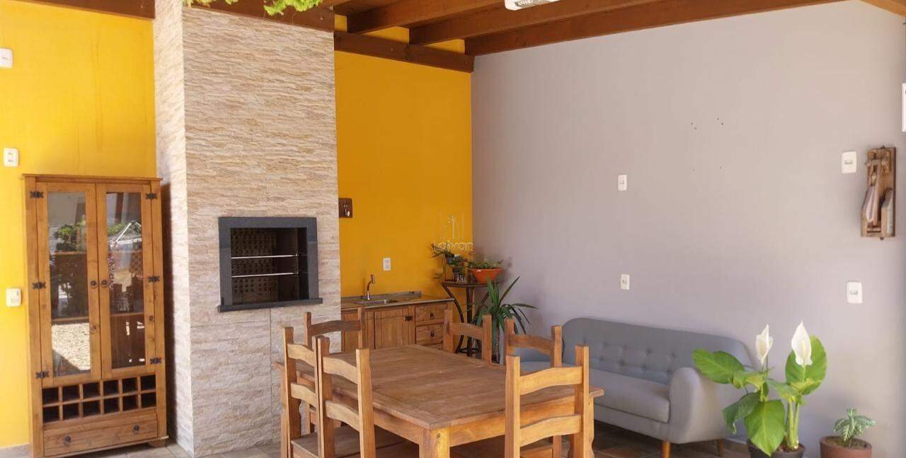 Conta com sala de estar, jantar copa/cozinha integradas, 1 suíte + 2 quartos, 1 banheiro social, área de festas com churrasqueira e 2 vagas.