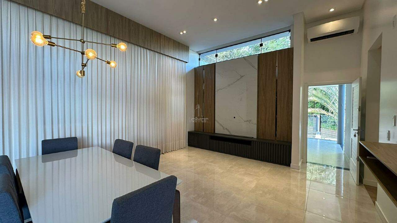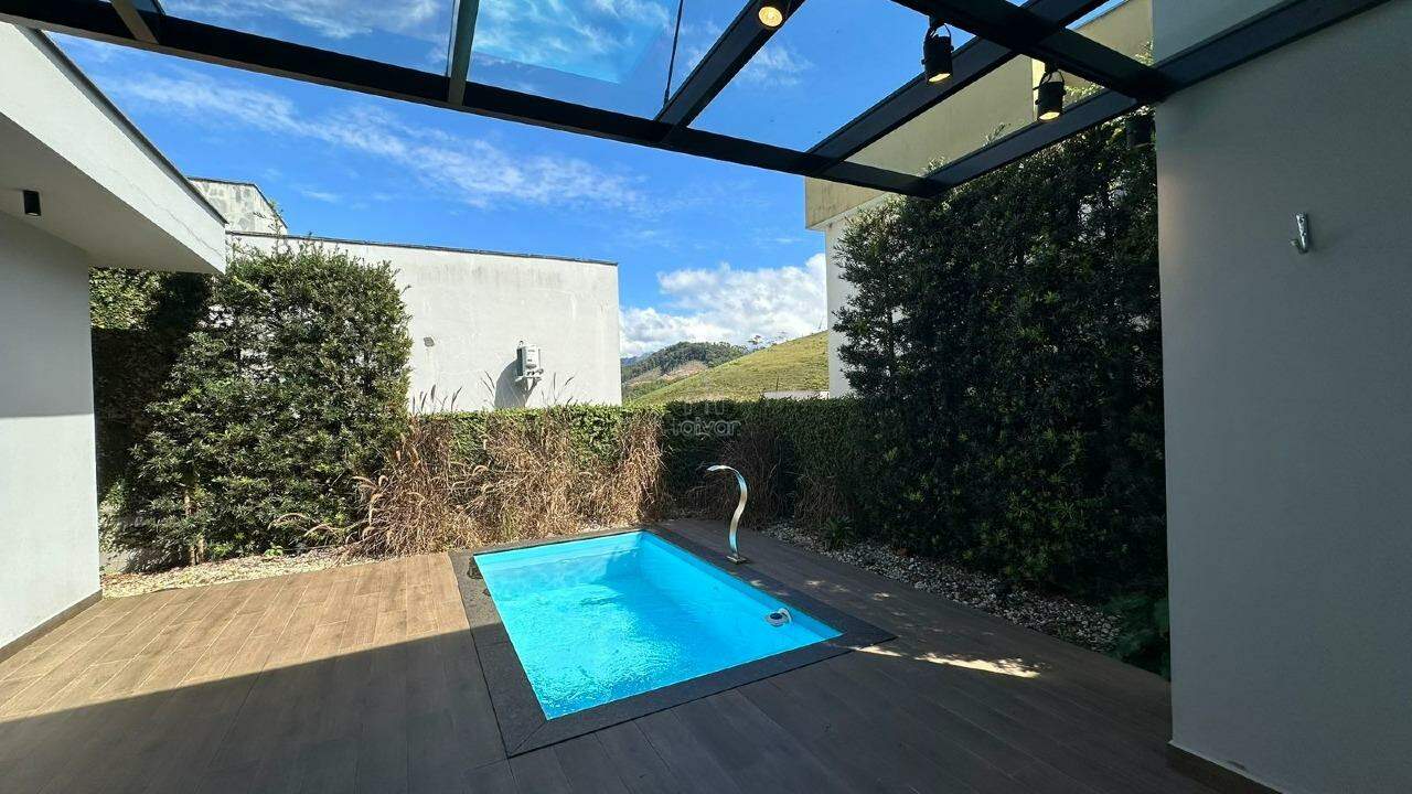 A casa conta com sala de estar, jantar e cozinha com churrasqueira integradas, 01 suíte, 02 quartos, banheiro social, área de serviço, piscina e quintal.