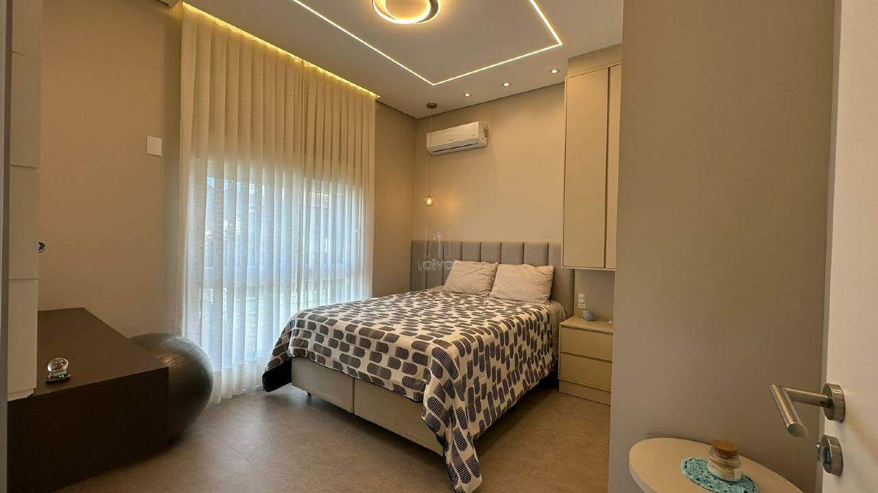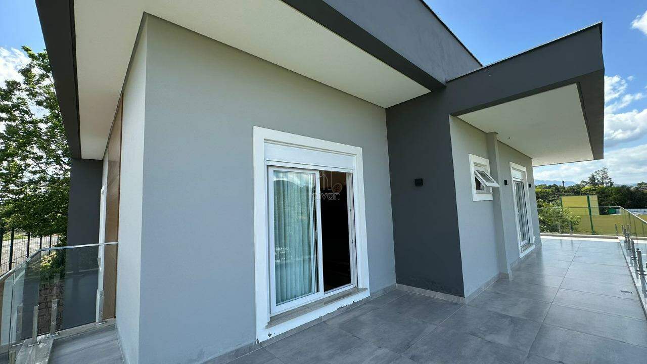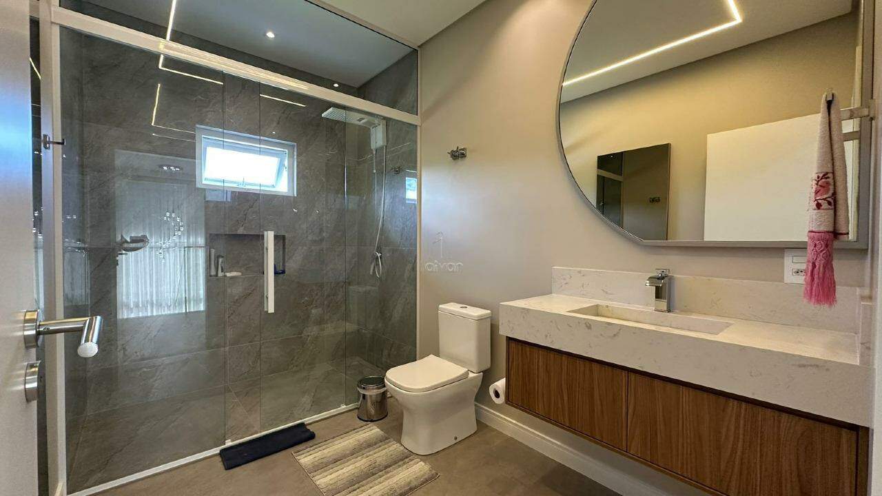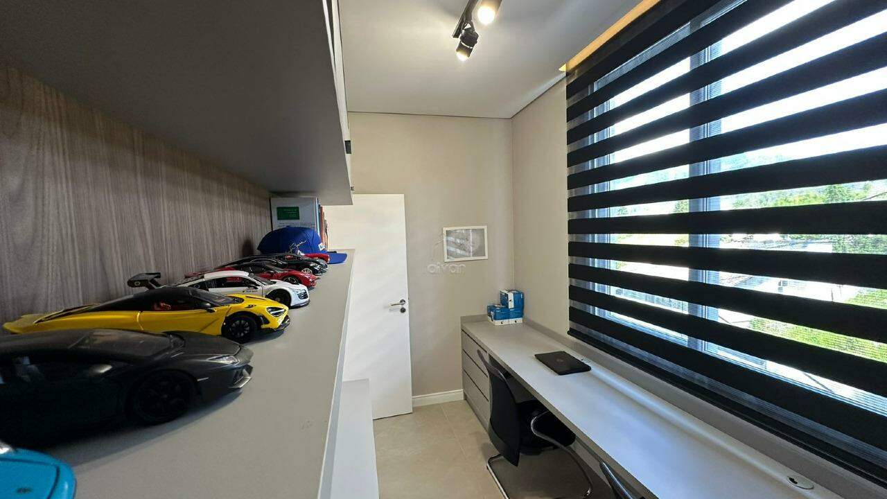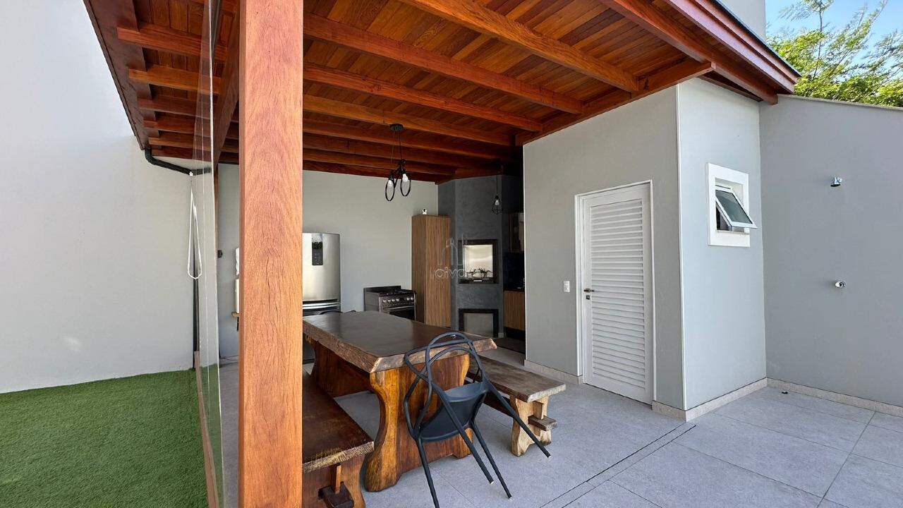 Conta com sala de estar, jantar e cozinha integradas, 1 suíte, 2 quartos, 1 banheiro social, 1 lavabo, escritório, área de serviço, despensa, sala de jogos e área de festas com churrasqueira, piscina, quintal e 3 vagas.