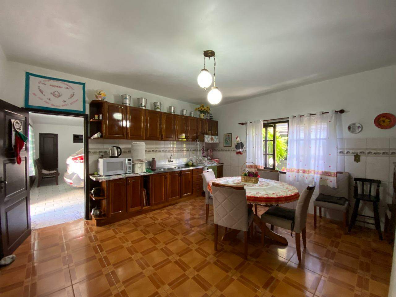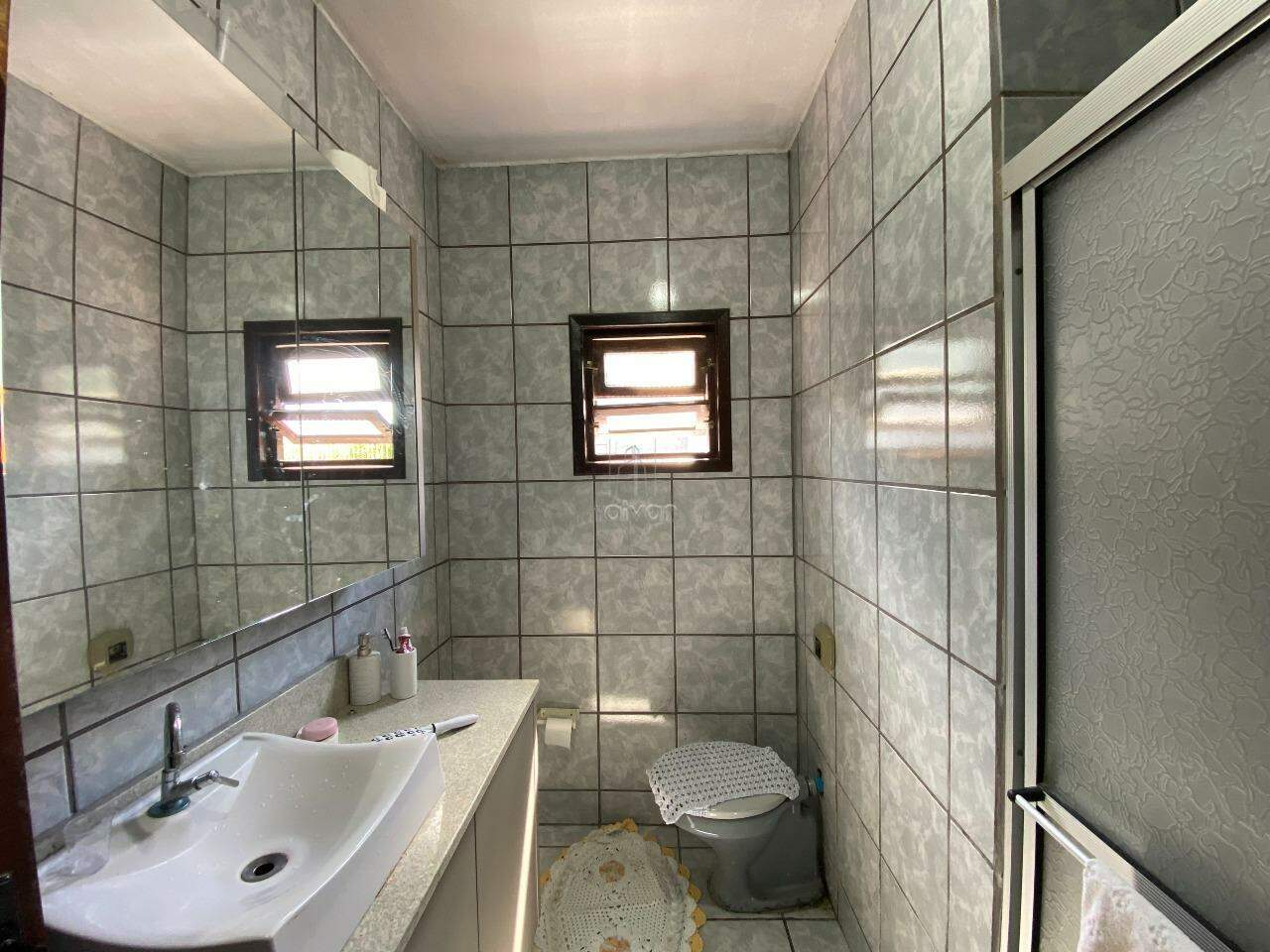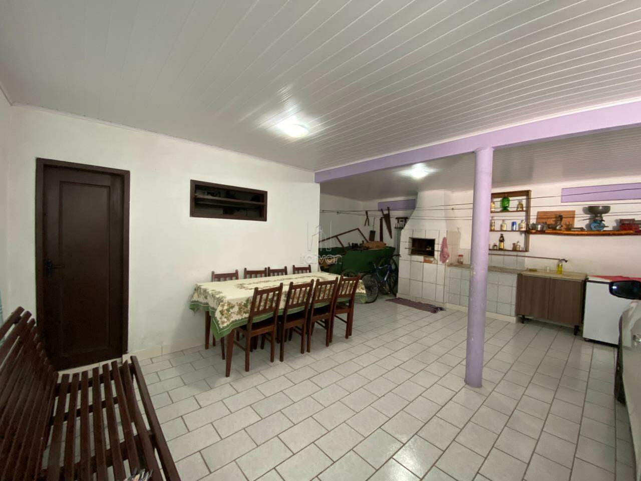 Conta com sala de estar, de TV, copa/cozinha, 2 suítes, 2 quartos, 1 banheiro social, 1 lavabo, área de serviço, área de festas com churrasqueira, quintal e 2 vagas.