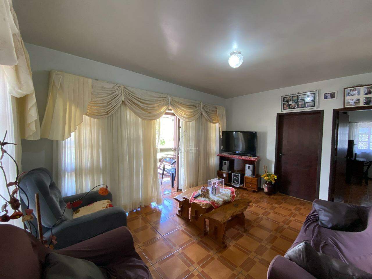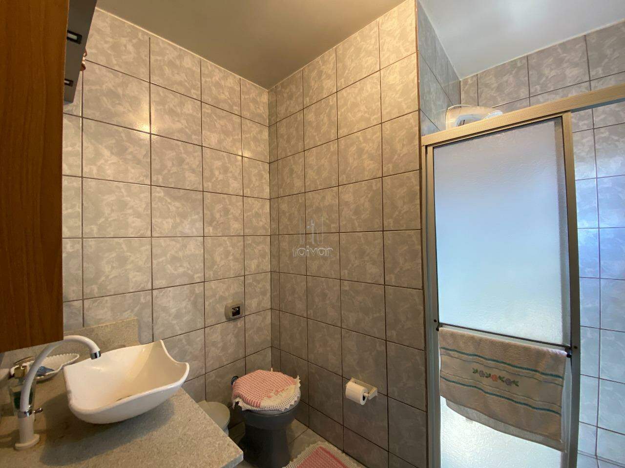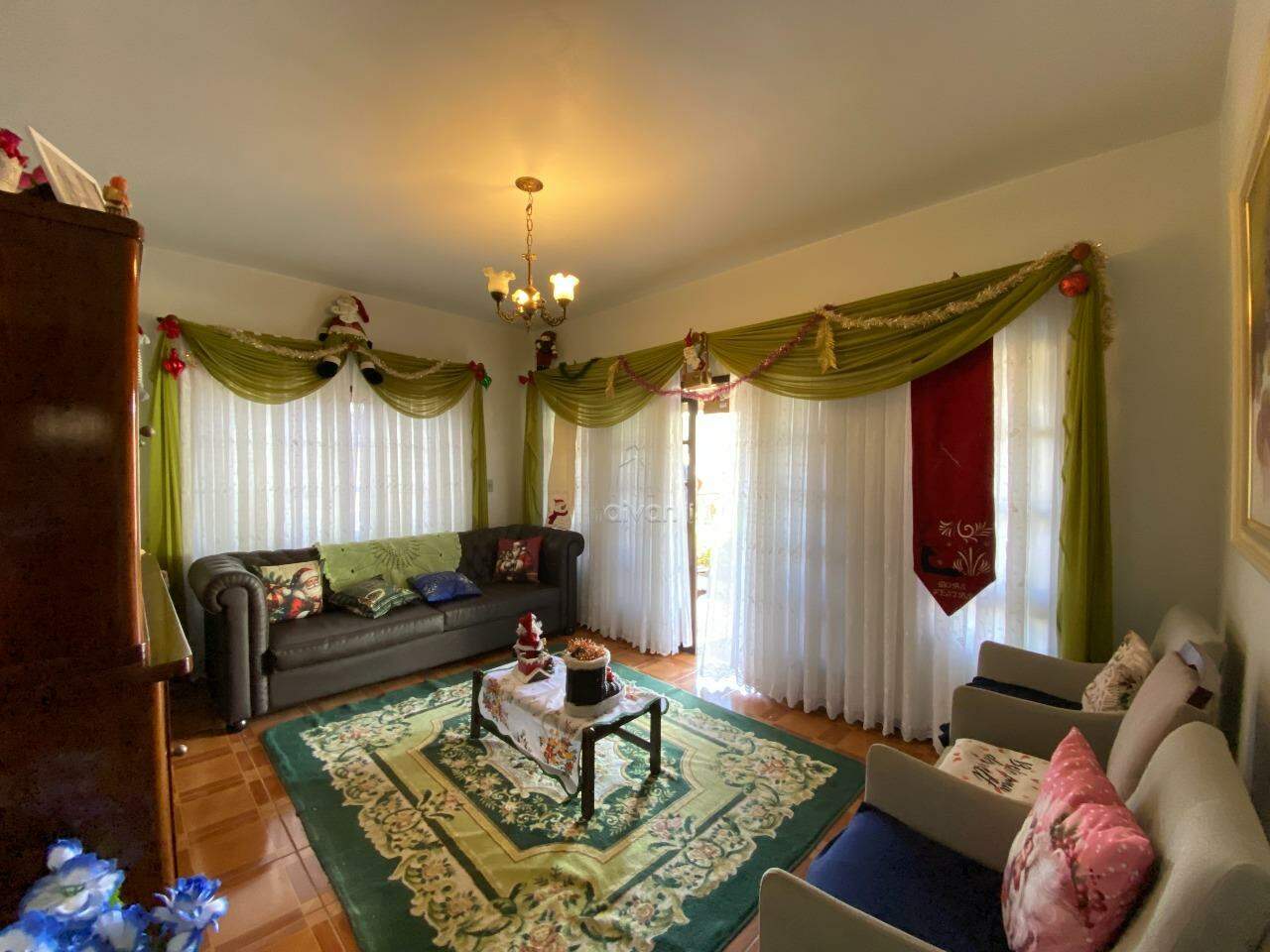 Conta com sala de estar, de TV, copa/cozinha, 2 suítes, 2 quartos, 1 banheiro social, 1 lavabo, área de serviço, área de festas com churrasqueira, quintal e 2 vagas.