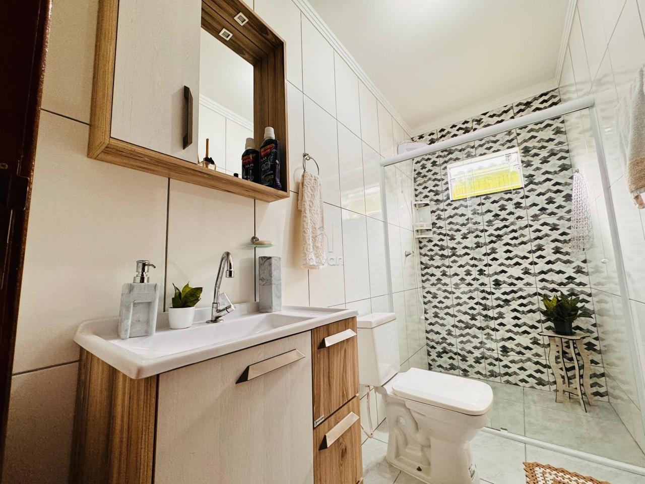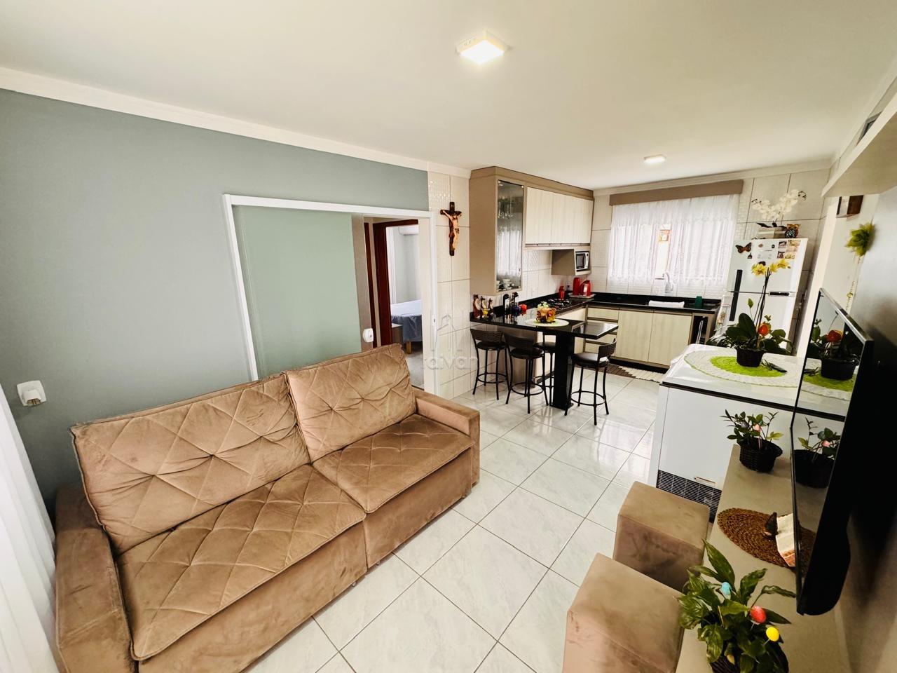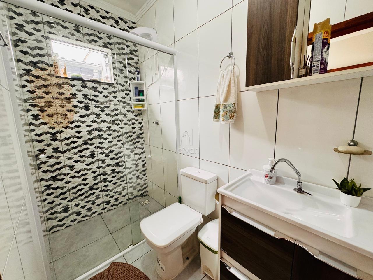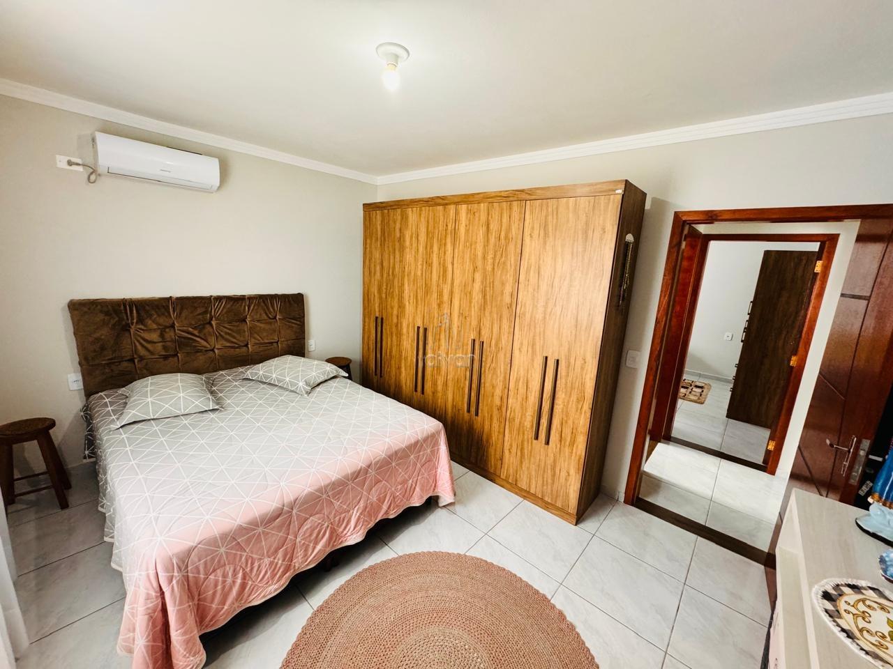 Conta com sala de estar e cozinha integradas, 2 quartos, 1 banheiro, área de serviço, área de festas com churrasqueira, quintal e 3 vagas.