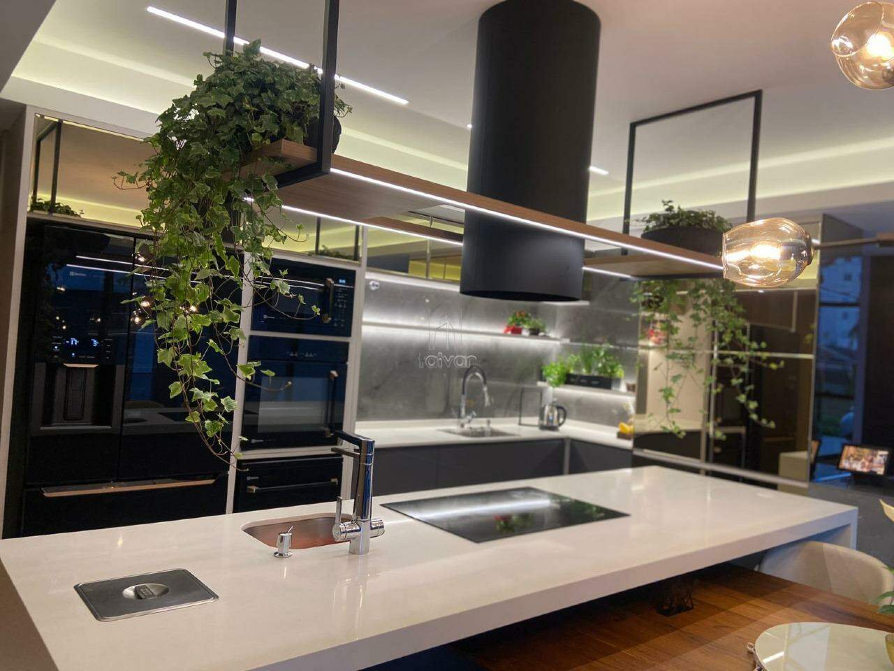 - Móveis planejados em laka, quartzo branco inteiro nas bancadas, vários ambientes com revestimento, papel de parede e luzes de led.