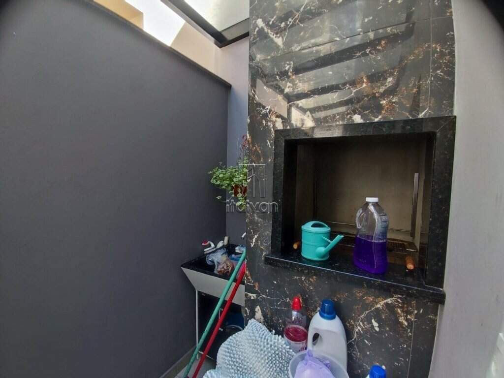 Parte térrea: Sala de estar e Jantar, cozinha, área de serviço, área de festas com churrasqueira nos fundos, lavabo e 02 vagas de garagem sem cobertura.