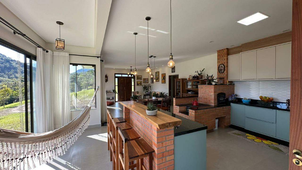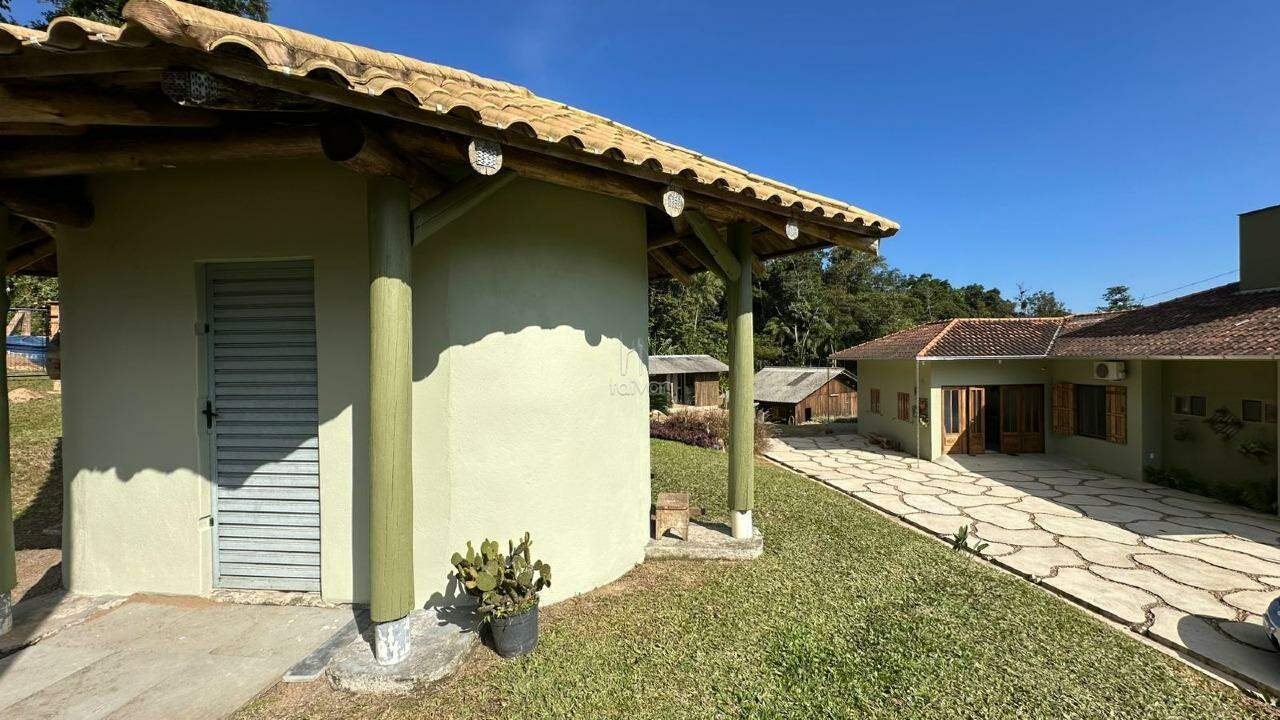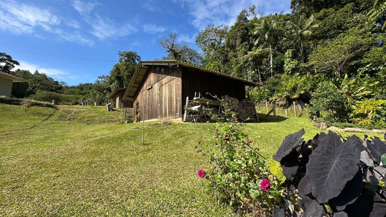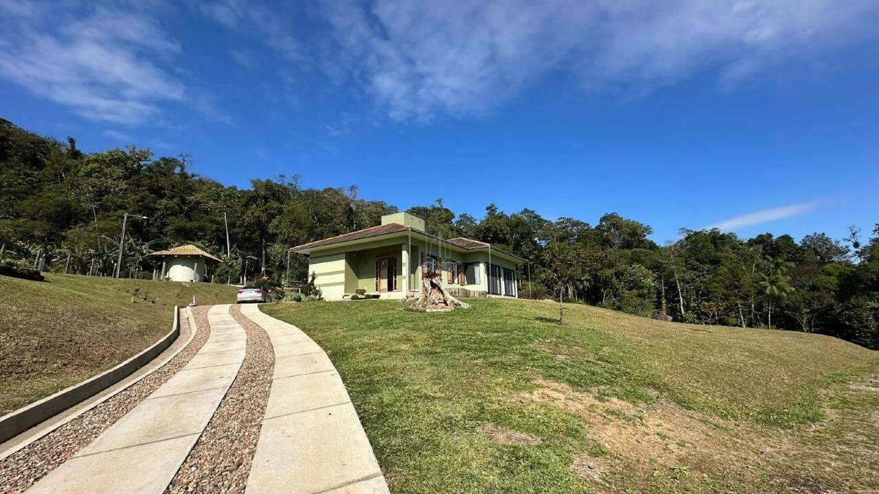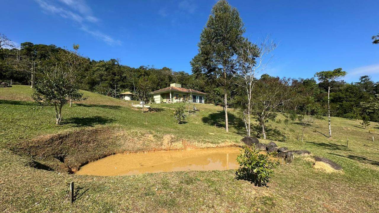 E também árvores frutíferas, galinheiro, horta, lagoa, quiosque e salão de festas.
