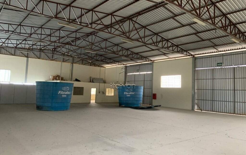 Galpão com 02 banheiros, 01 sala de escritório e pátio de carga e descarga.
