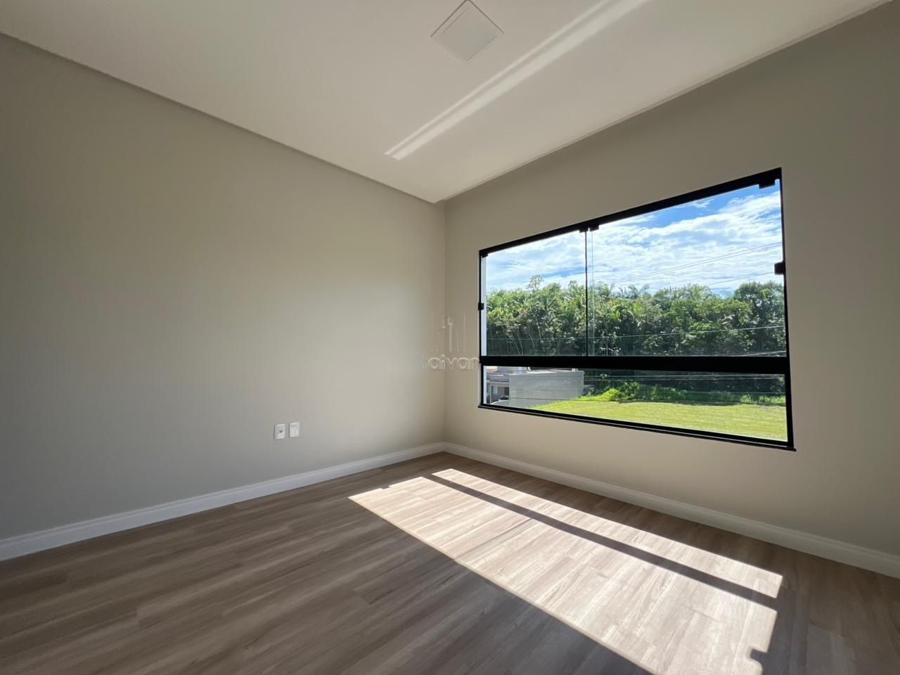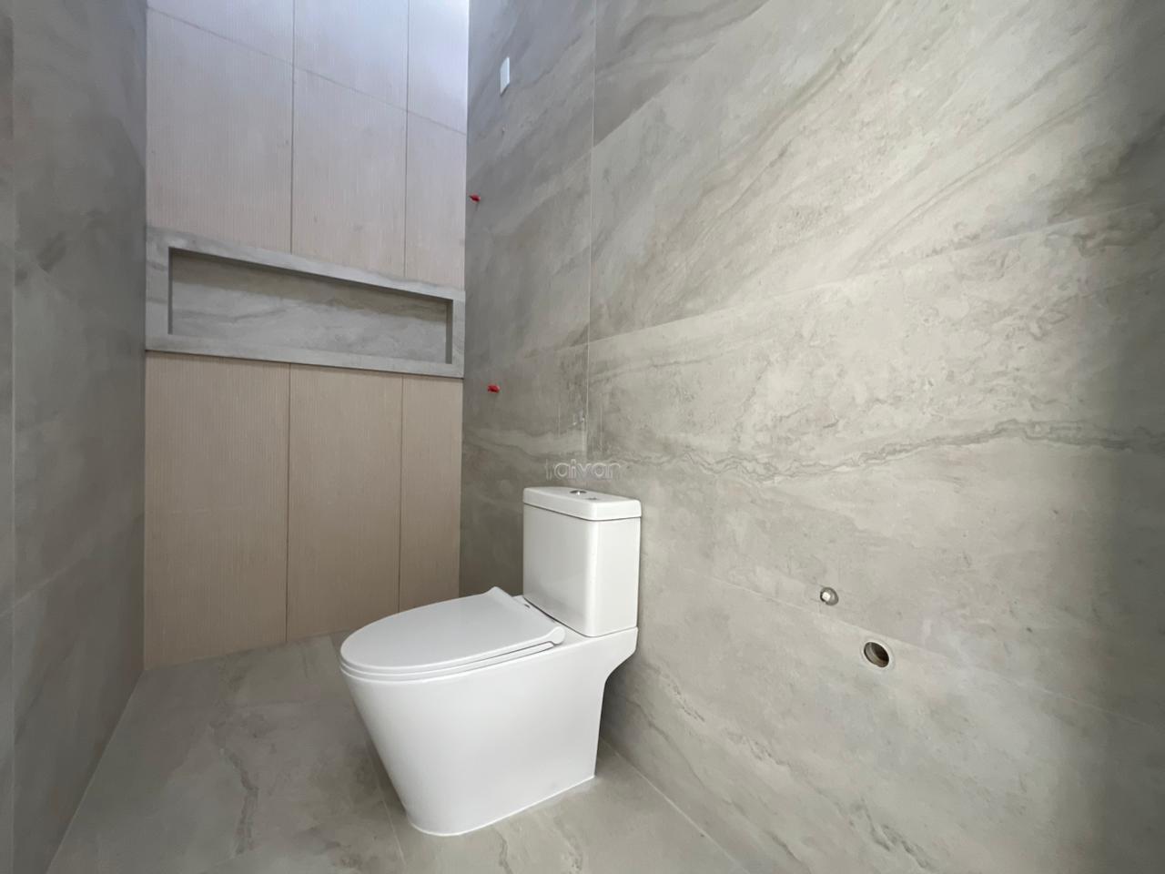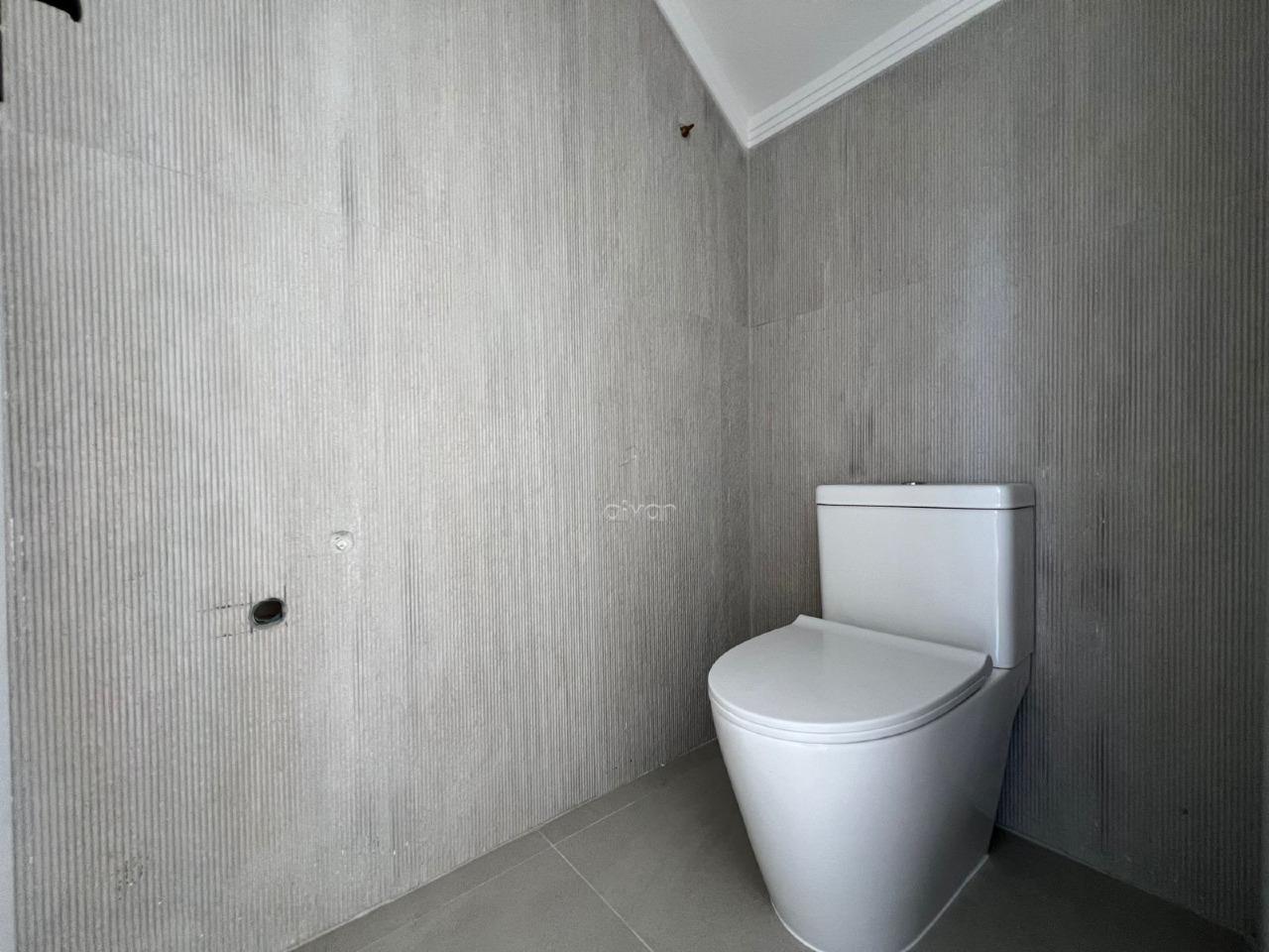 Oferece uma sala de estar, jantar e cozinha integradas, além de 1 suíte + 2 quartos. Possui também 1 banheiro social, 1 lavabo, área de serviço, churrasqueira, quintal e 2 vagas.