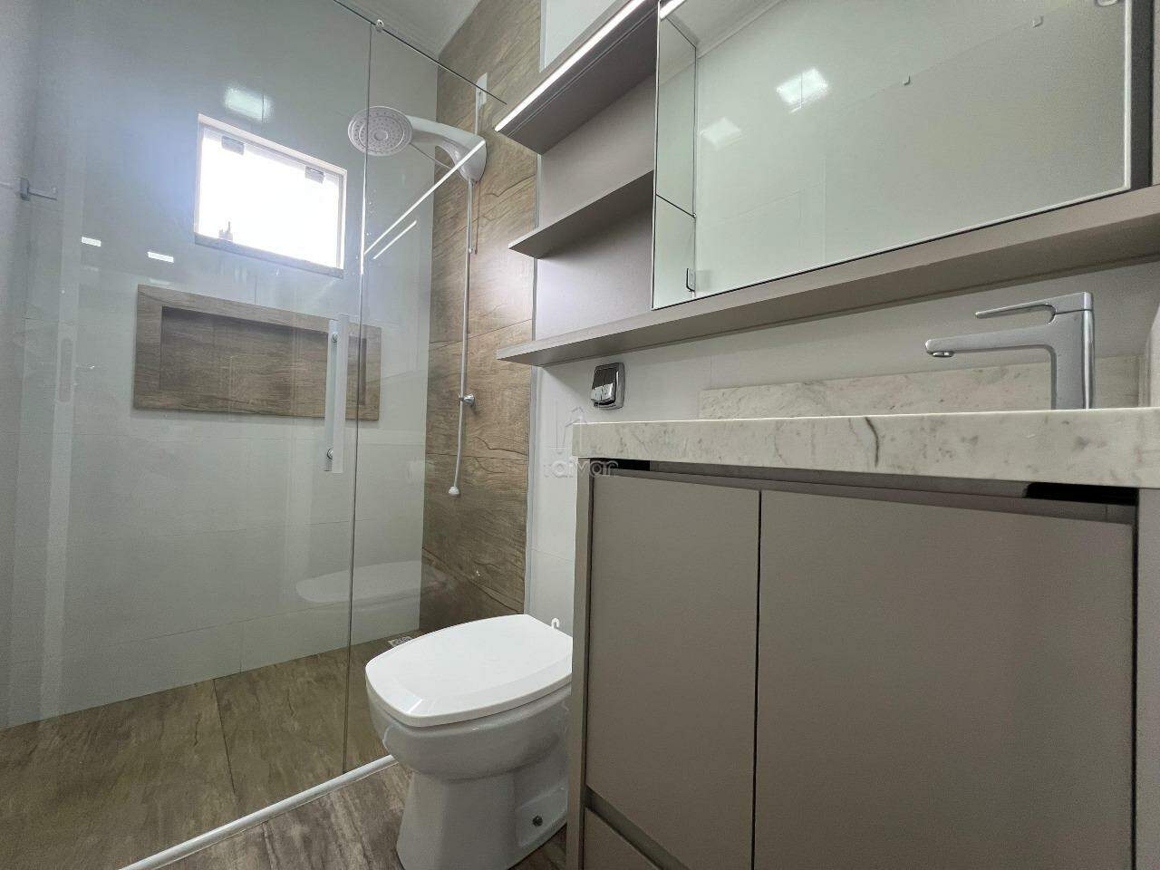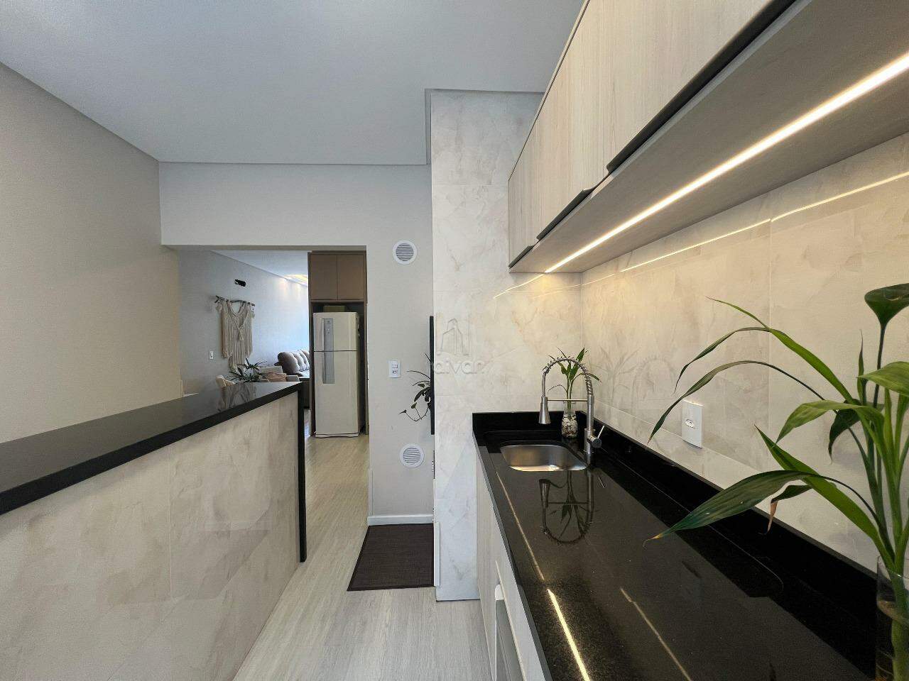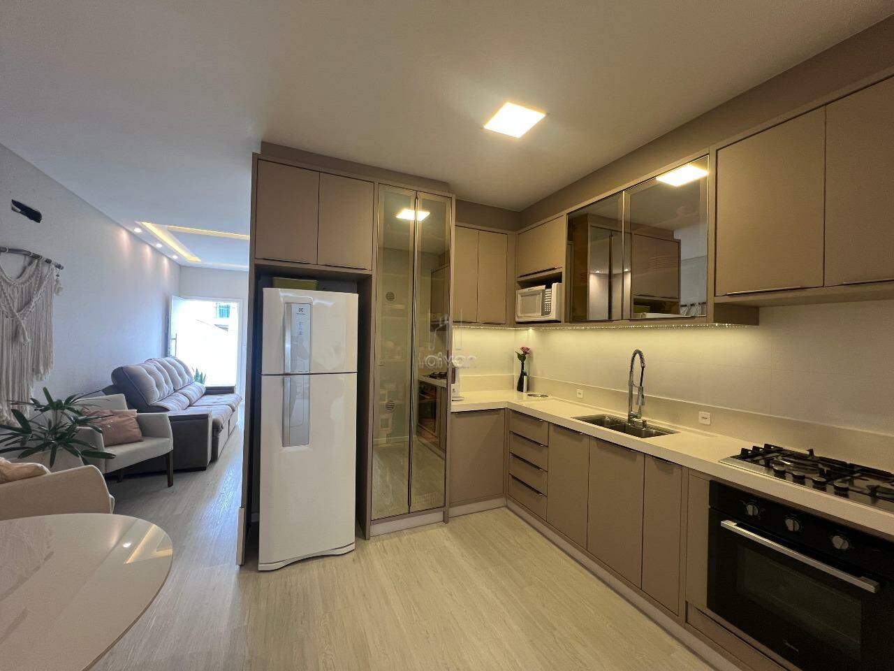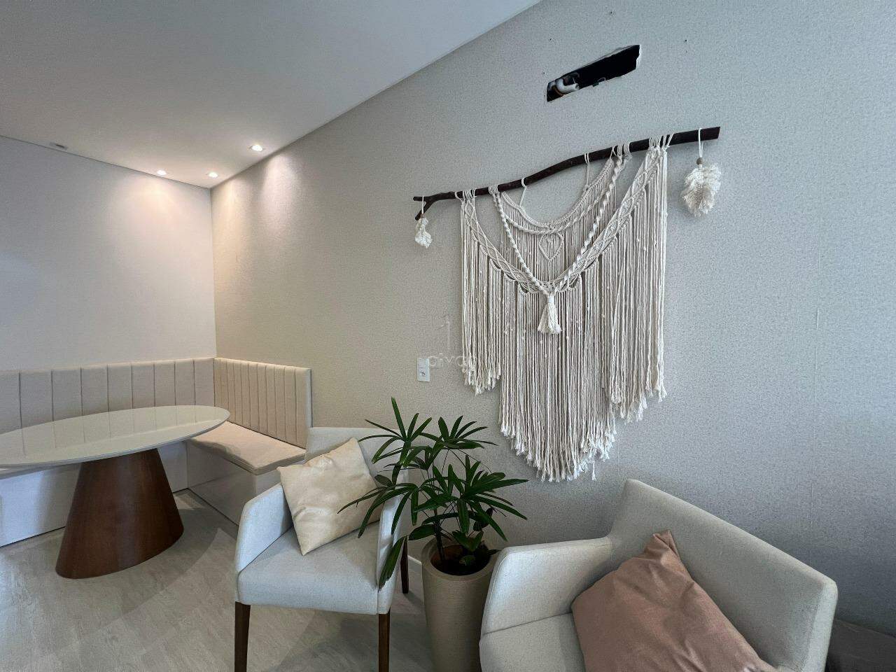 Conta com sala de estar, jantar e cozinha integradas, 02 suítes, 01 lavabo, área de serviço, área de festas com churrasqueira e 02 vagas.