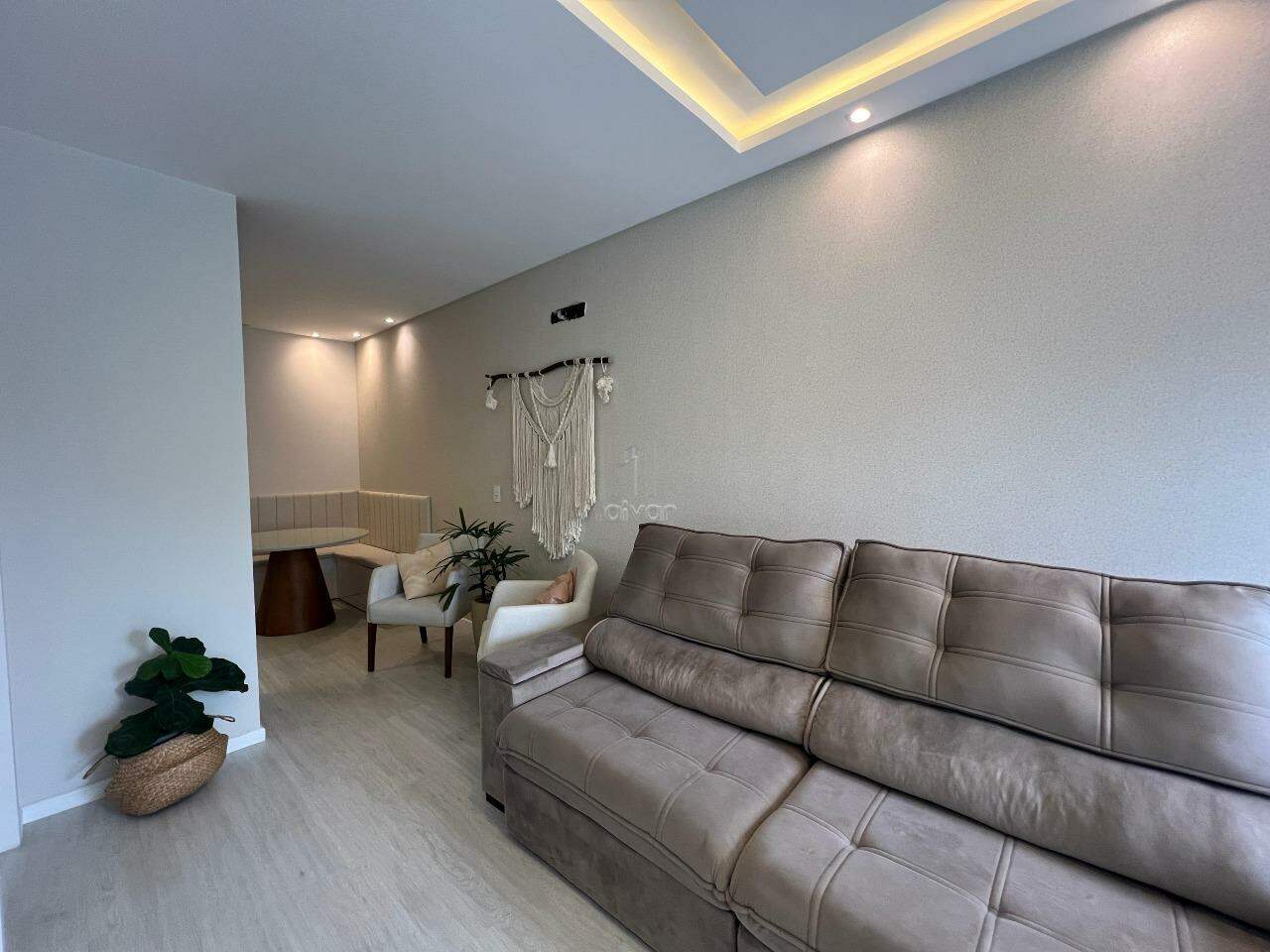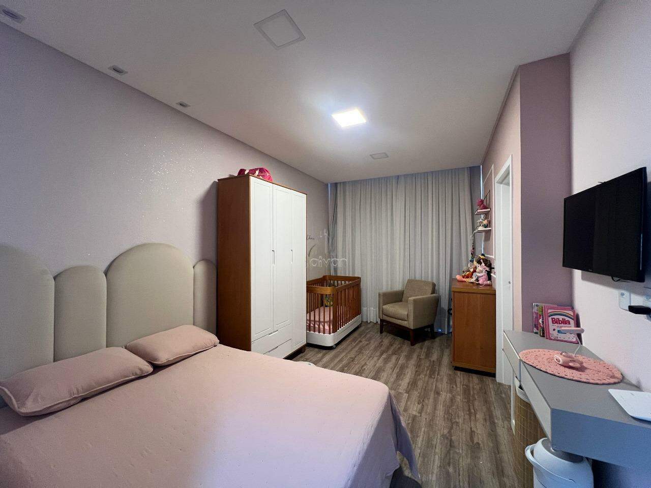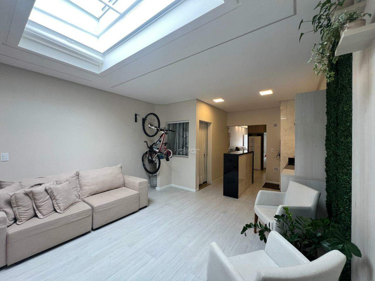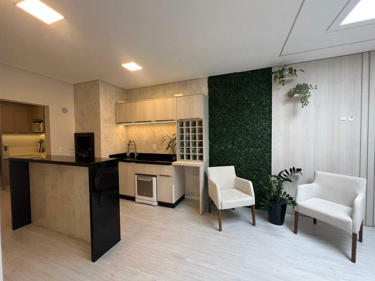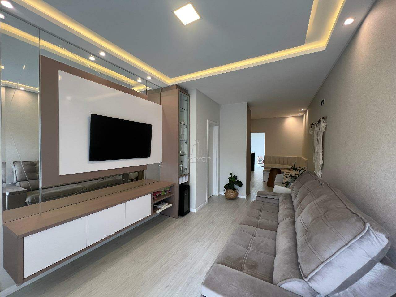 Conta com sala de estar, jantar e cozinha integradas, 02 suítes, 01 lavabo, área de serviço, área de festas com churrasqueira e 02 vagas.