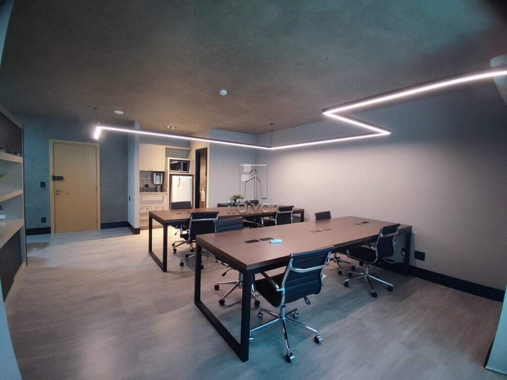Sala comercial pronta para uso, localizada no Centro Executivo, com 50 m² privativos. O espaço conta com recepção, copa, banheiro privativo, sacada técnica, vaga de garagem e mobiliário completo conforme fotos.